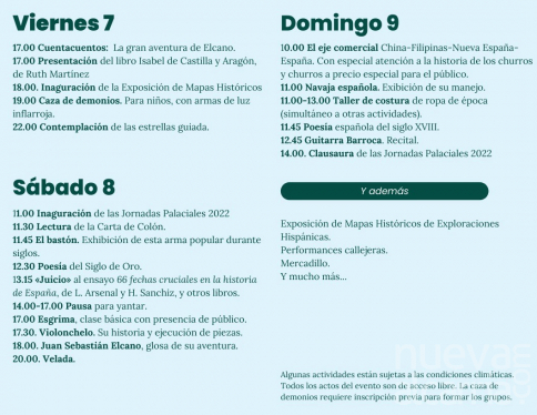 Al día siguiente, el sábado, 8 de octubre, a las 11 horas de la mañana, se inaugurarán las Jornadas Palaciales. Será entonces cuando se vuelva a dar lectura al primer documento escrito sobre el descubrimiento de América, fechado en Cogolludo el 19 de marzo de 1493.
