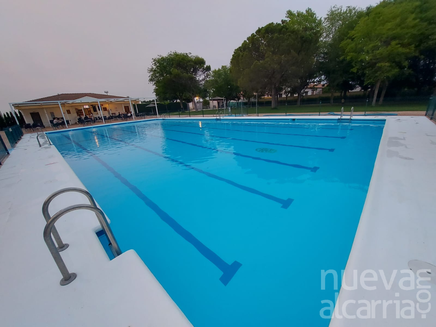 Las tareas de acondicionamiento han afectado al vaso y los pediluvios, mejorando su superficie con el lijado y acondicionamiento de la misma para garantizar su impermeabilización, y el posterior pintado de la cavidad y la señalización de las calles en el suelo junto con la marcación de alturas en color rojo.