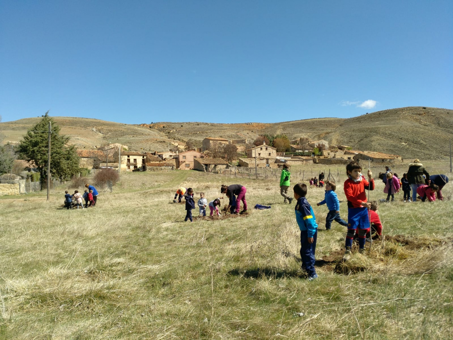 Los niñ@s del CEIP Virgen de la Hoz, plantan árboles en Valsalobre