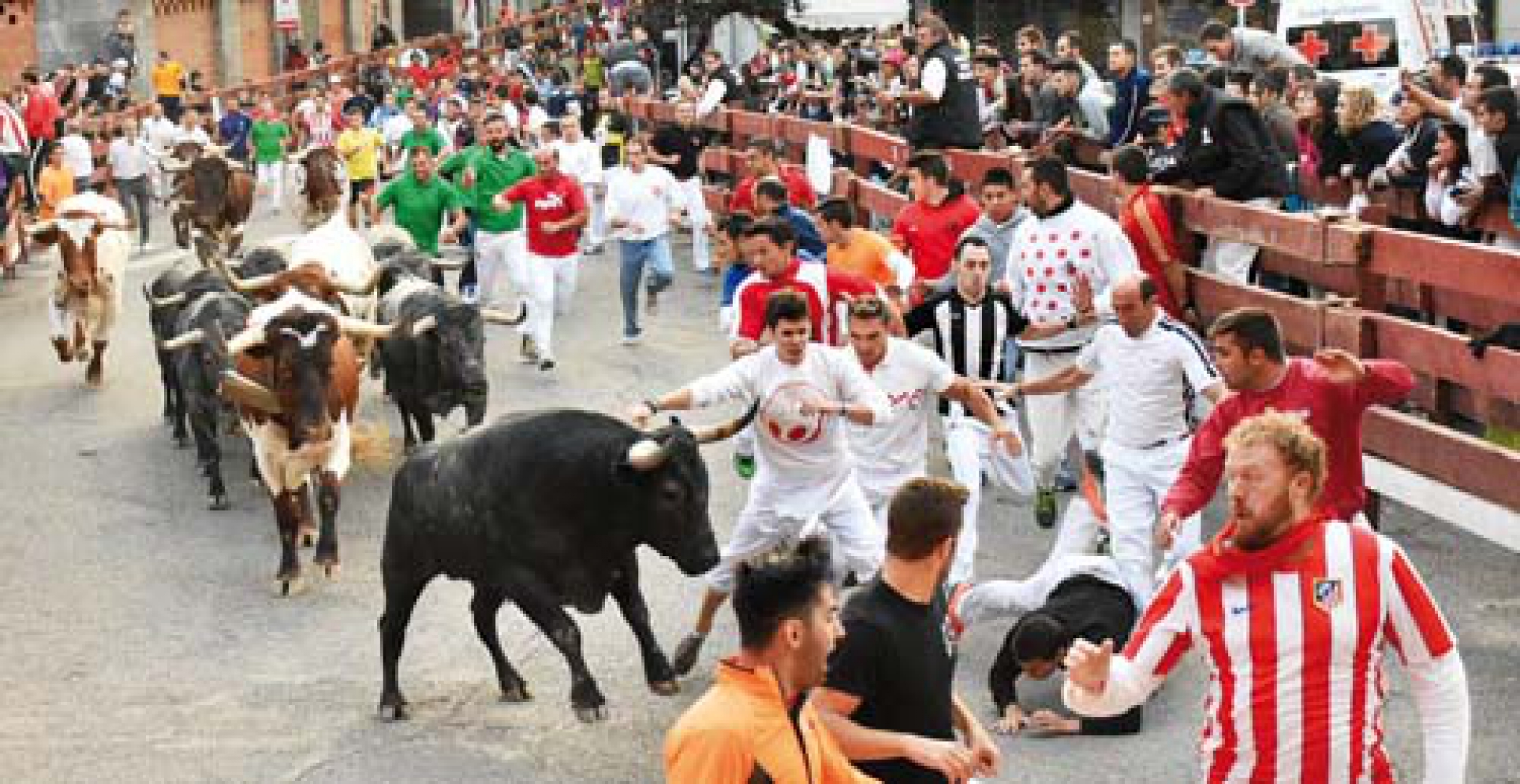 los cuales comentaban que mientras sigan viniendo ganaderías de primer orden, como ha ocurrido este año, ellos no faltarán a la cita. La mejor noticia de la mañana, era que no había que lamentar heridos por asta de toros y las únicas intervenciones de los servicios médicos a lo largo del recorrid fueron para atender algunas contusiones y golpes producidos por caídas debido a la velocidad de las reses y tropiezos en la calzada. Los momentos más espectaculares de la mañana se han producido en la entrada al callejón, donde expertos corredores y en especial, el local Jesús de la Cruz, han tenido que explotar su velocidad para no ser arrollados por la manada. Una vez los toros en el interior de la plaza, inmediatamente han accedido al interior de corrales, la manada de cabestros venía detrás de ellos, ya que no podían seguir el fuerte ritmo impuesto por los toros cárdenos; una acción que ha sido bien vista por el torero de Alaminos, Curro de la Casa, el cual no ha querido perderse el encierro, presenciándolo desde los tendidos. Como resumen del ciclo encierril de nuestra ciudad, podemos hablar ya de rotundo éxito, tanto a nivel de ganaderías, corredores y espectadores, como igualmente a nivel de organización.