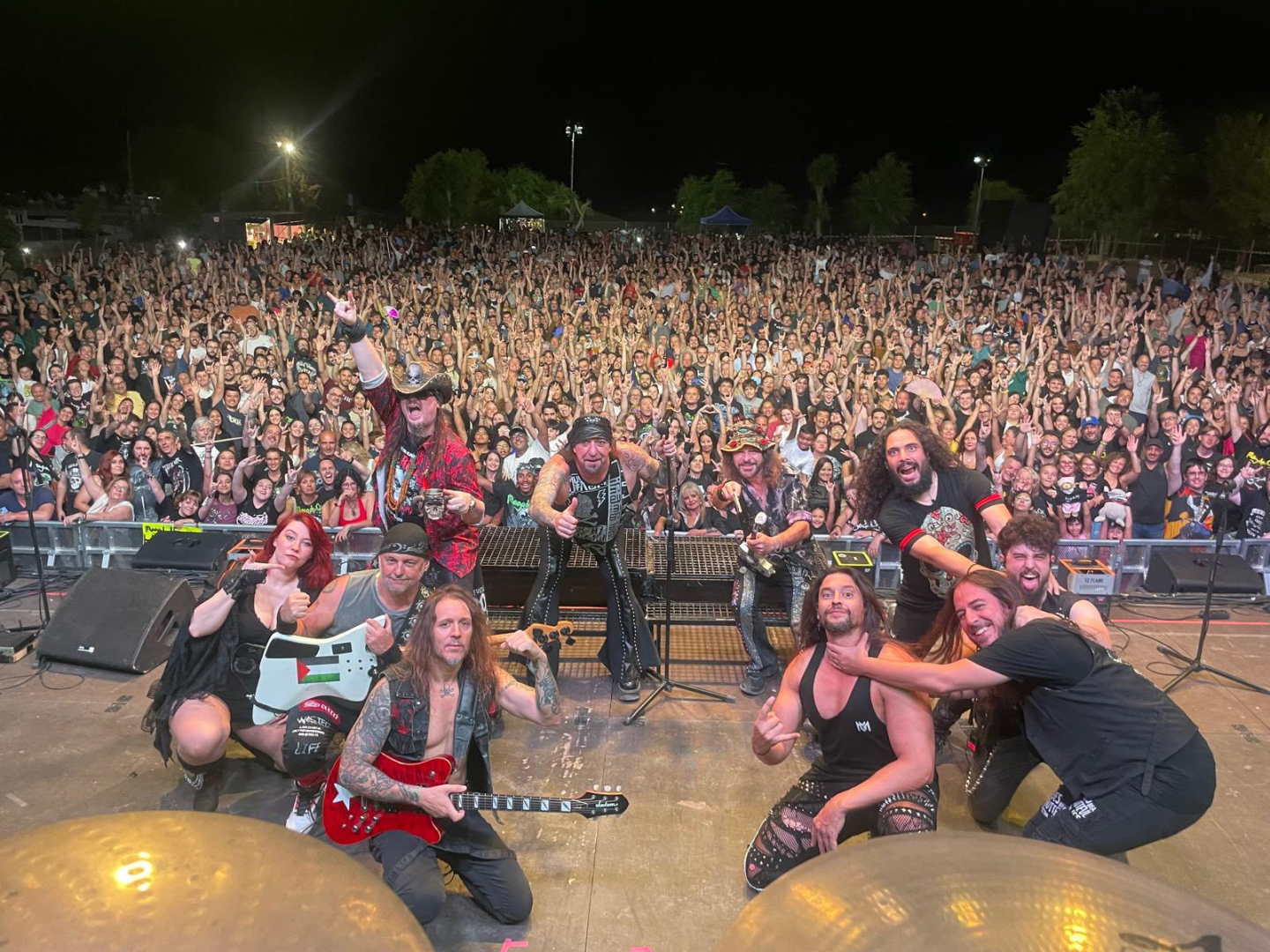 Con la noche ya cerrada, la banda saltó al escenario para demostrar por qué, después de más de tres décadas, su magia sigue intacta. A lo largo de su trayectoria, Mago de Oz ha creado himnos que ya forman parte de la historia musical de nuestro país, y en Heras de Ayuso no faltaron. El público coreó sin descanso clásicos como "Molinos de viento" y "La costa del silencio", temas que conectan de inmediato con la memoria colectiva y que resonaron con una fuerza impresionante en el entorno del pueblo. La banda, con su formación actual, demostró una energía y una conexión con el público dignas de admirar, combinando la maestría del violín de Mohamed con la potencia de las guitarras, que hicieron vibrar a la audiencia en canciones más recientes y potentes como "Bandera negra".