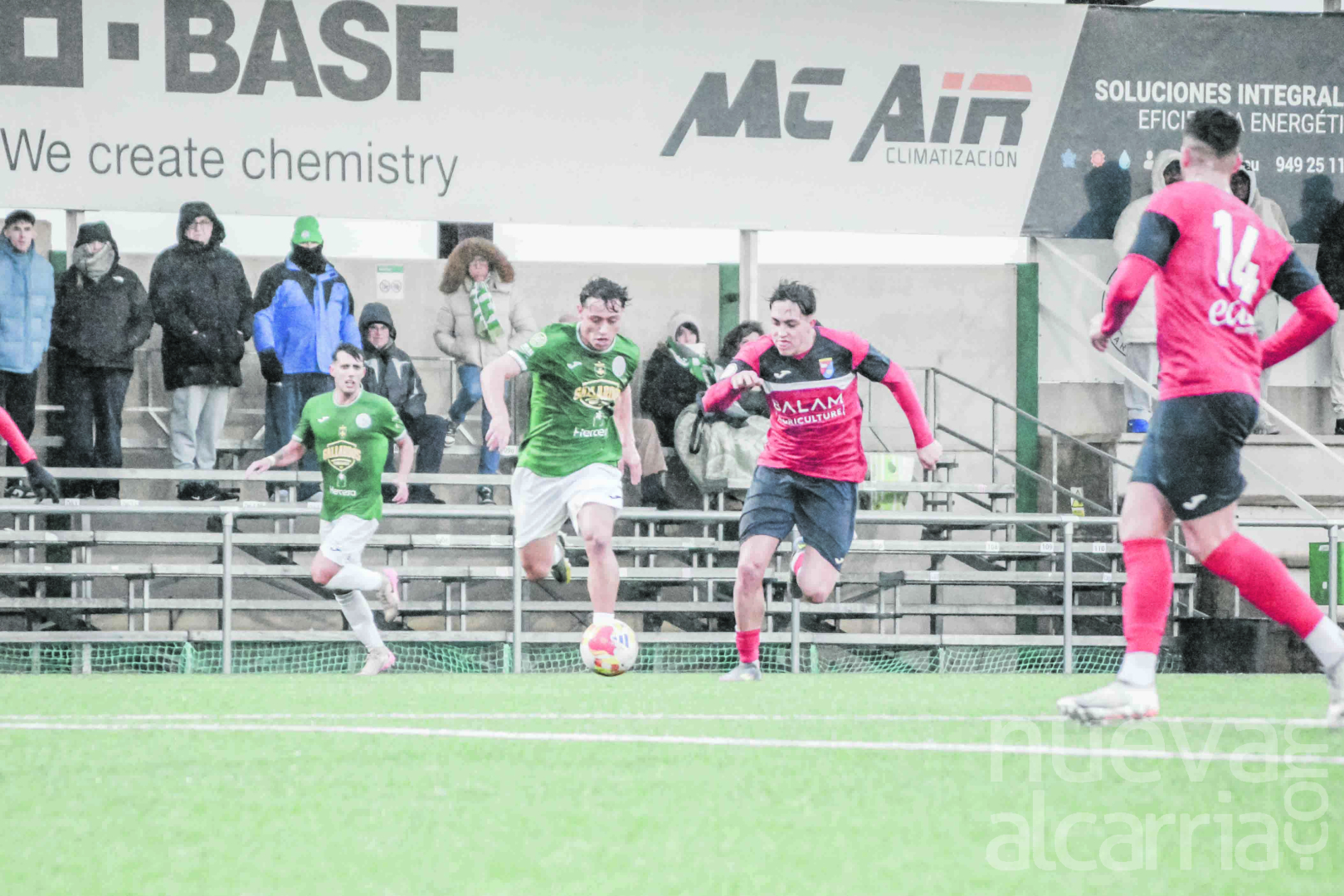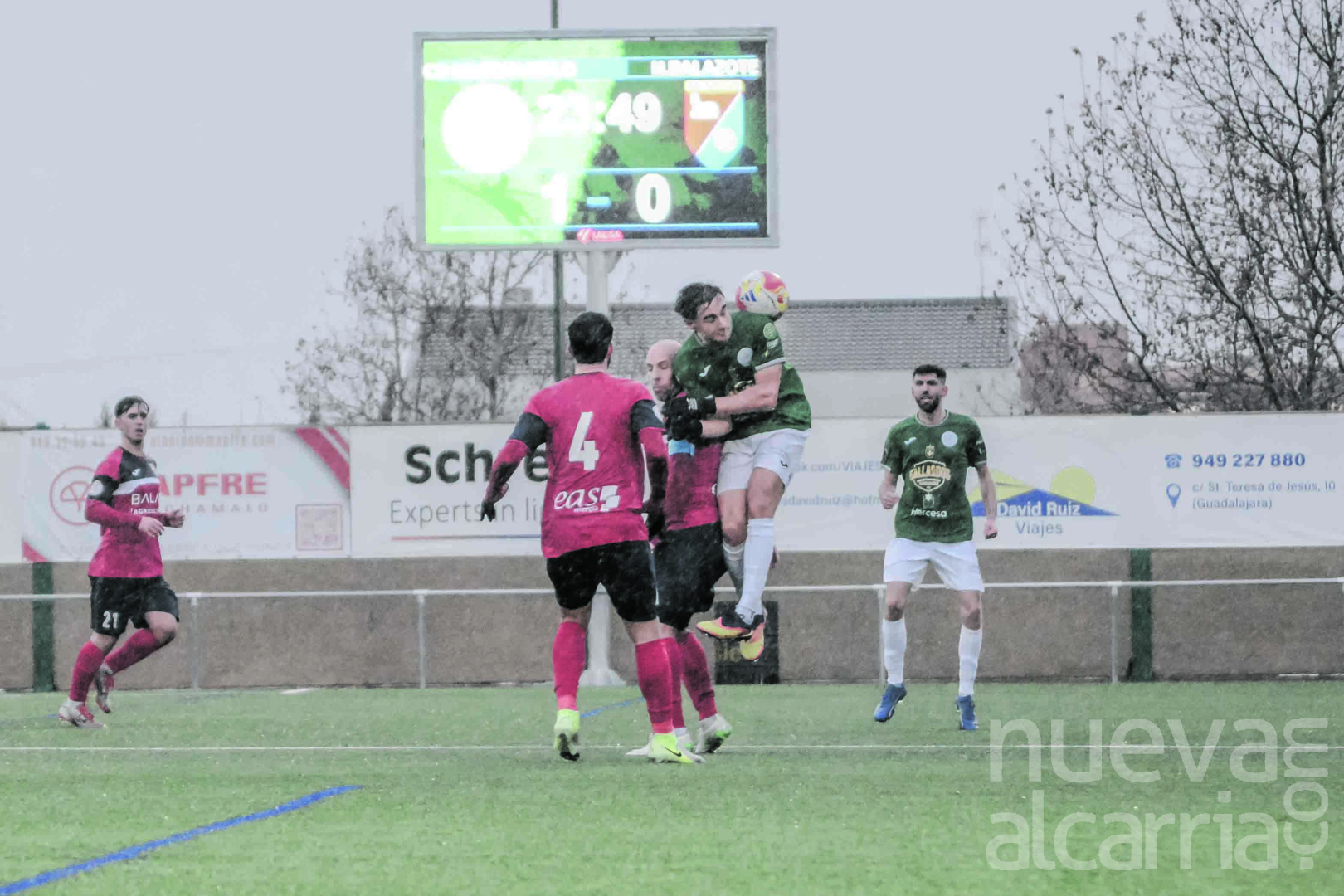 El partido comenzó con los visitantes probando fortuna primero, aprovechando el aire a favor, aunque sin acierto en sus llegadas iniciales. Las condiciones meteorológicas, con una intensa lluvia y un viento muy presente, condicionaron el juego desde el inicio. Pese a tener el viento en contra, el Marchamalo dejó claro desde los primeros minutos que quería mandar en su feudo, mostrando una actitud decidida y un planteamiento muy ordenado.