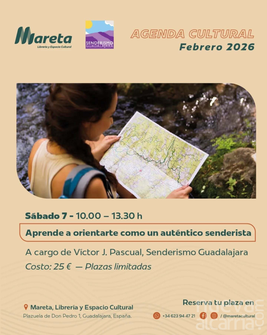 El próximo sábado 7 de febrero se celebrará en Guadalajara una nueva edición del curso de interpretación de mapas, dirigido a caminantes y senderistas y organizado por el espacio cultural Mareta, situado en la plazuela de Don Pedro, 1C, junto al mercado de abastos. La formación se desarrollará entre las 10.00 y las 13.30 horas.