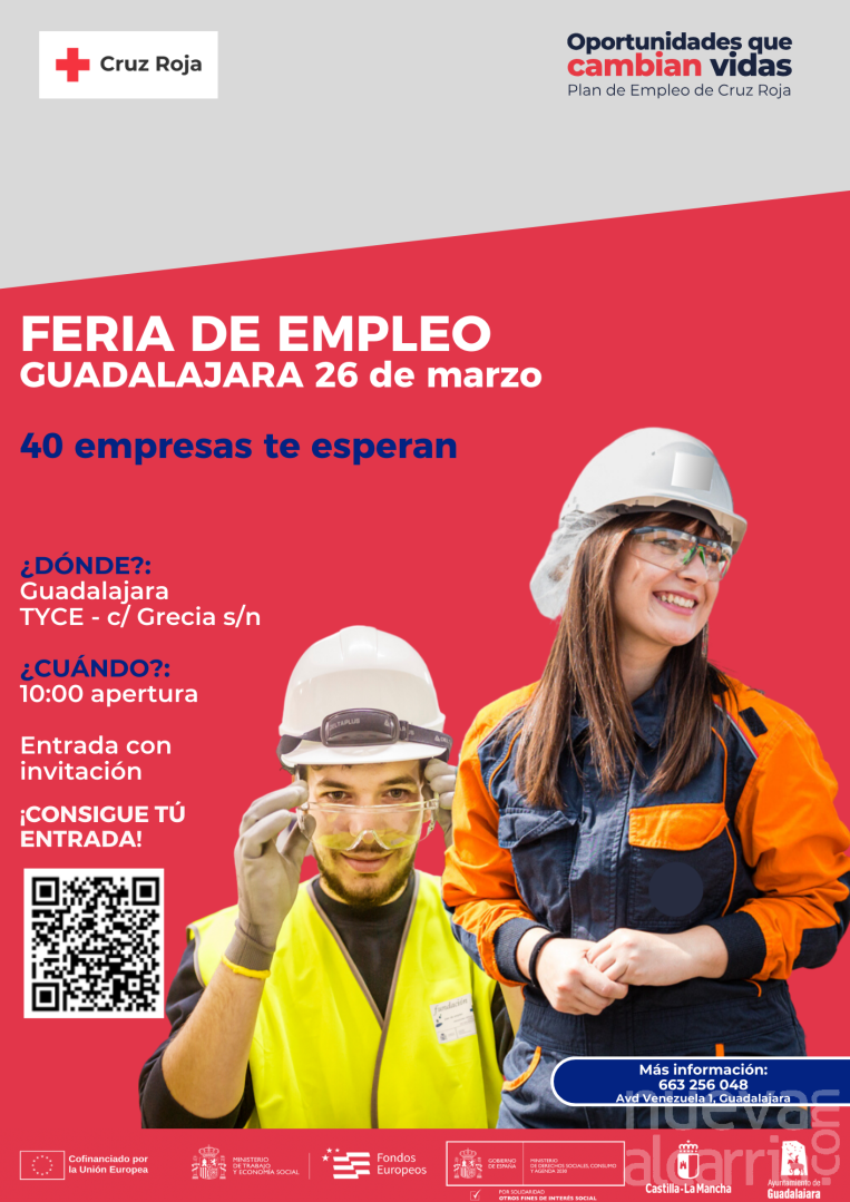 La feria llega tras la celebrada en Azuqueca de Henares, con 405 asistentes y 1.418 entrevistas. Más información: Área de Empleo de Cruz Roja Guadalajara (Avda. de Venezuela, 1) o teléfono 663 256 048.