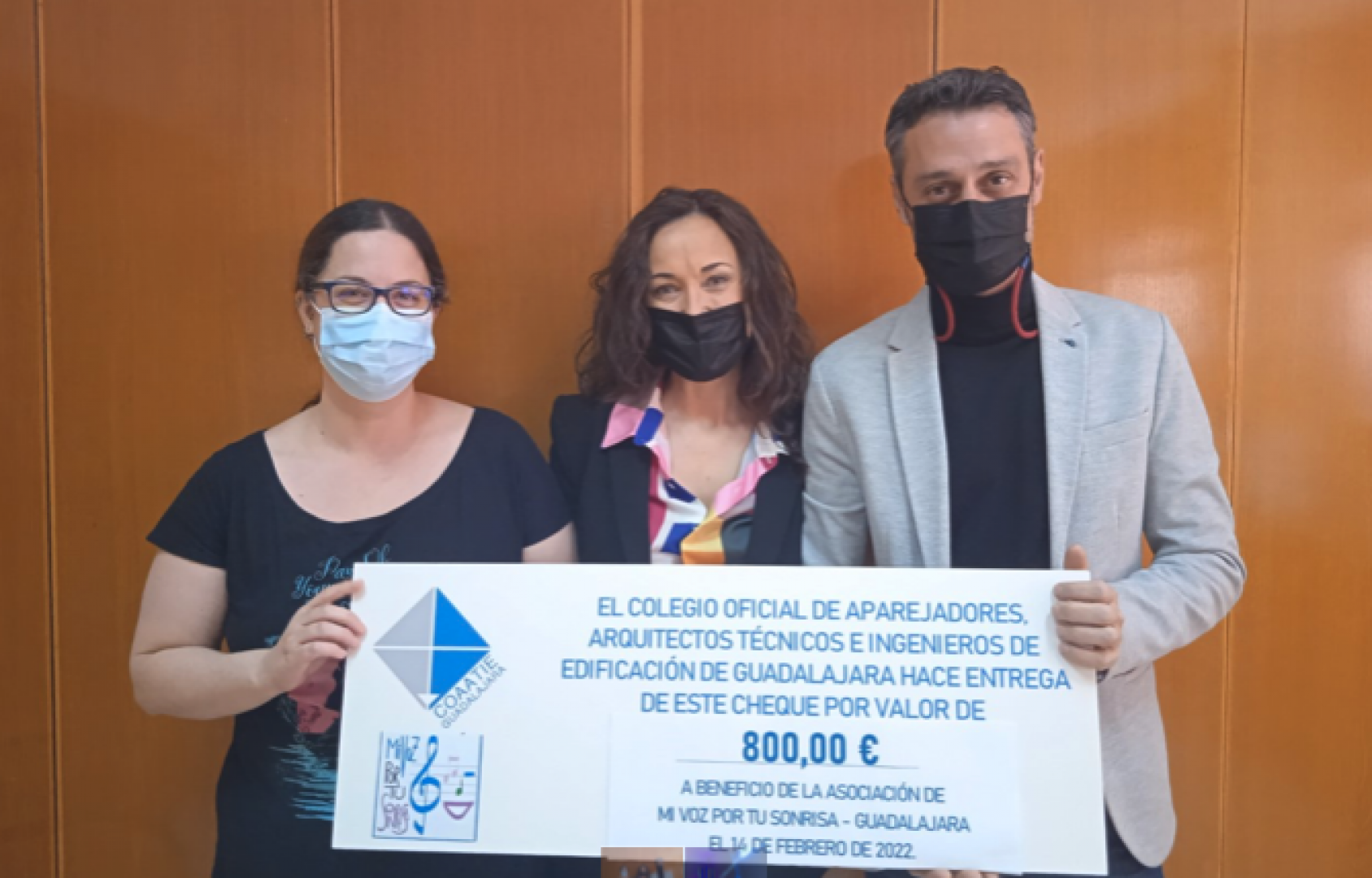 El Colegio de Aparejadores, Arquitectos Técnicos e Ingenieros de Edificación de Guadalajara (COAATIE) ha donado la cantidad de 800 euros a la organización Mi Voz por tu Sonrisa.