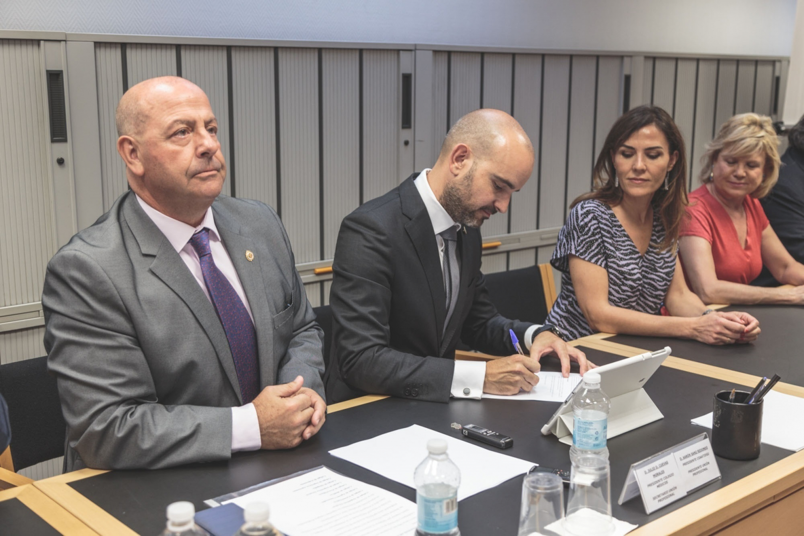 A este acto inaugural han asistido representantes de los doce colegios integrantes. Así, han presenciado la firma Emilio Vega, presidente del Colegio Oficial de Abogados; Cándida Gutiérrez, presidenta del Colegio de Agentes Comerciales; José A. Herce, presidente del Colegio de Arquitectos; Concepción Sánchez, presidenta del Colegio de Farmacia; Gabriel Mesquida, delegado del Colegio de Ingenieros Agrónomos de Centro y Canarias; Juan José Cruz, del de Ingenieros Técnicos Industriales; Julio Cuevas, presidente del Colegio de Médicos; Oscar Garcés, presidente del Colegio Odontólogos; Andrés Taberne, presidente del Colegio de Procuradores; Miguel Ángel Serrano, presidente del Colegio Veterinarios, y Aarón Sanz, presidente del Colegio de Aparejadores.