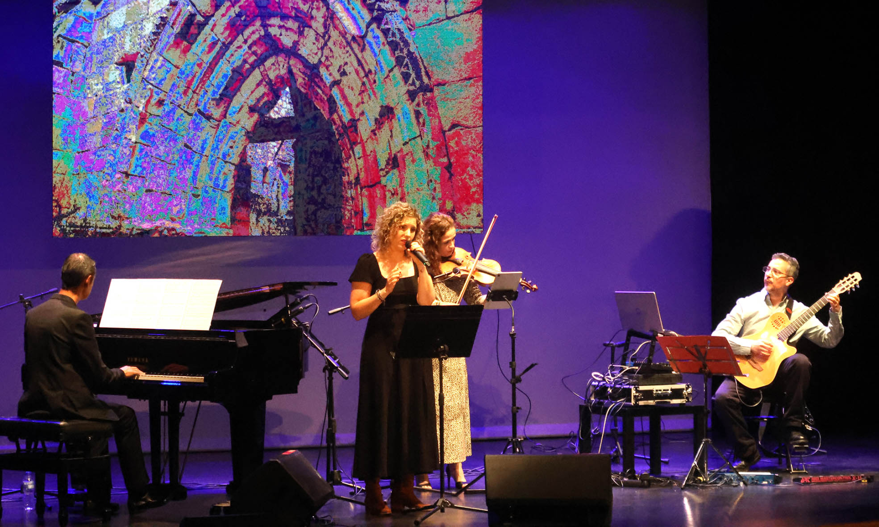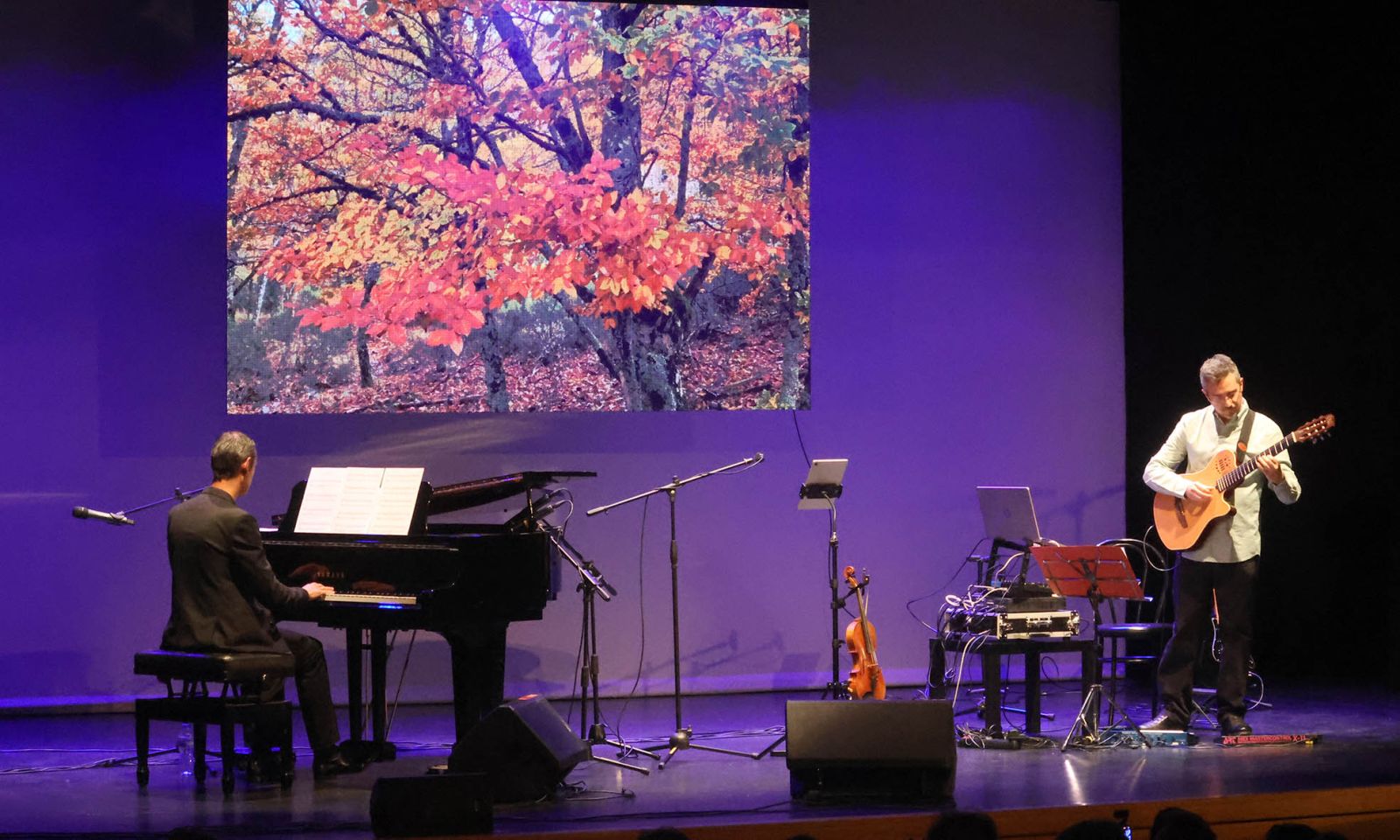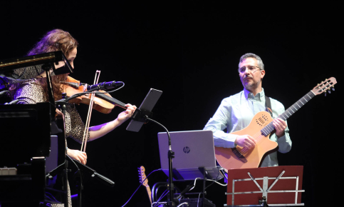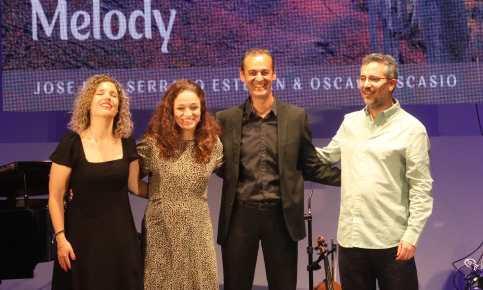 Precisamente, en la recta final del concierto Serrano y Pascasio ofrecieron un tema inédito, un trabajo recién compuesto entre ambos, titulado «Autum melody», que sonó espectacular. Fue el penúltimo acto de la cita, antes de que los cuatro protagonistas de la tarde cerraran la velada con un tema conjunto, en el que interpretaron la canción «Storm at dusk» de Serrano, al tiempo que Ana Yela recitaba sobre ella un magnífico poema dedicado a los paisajes de Guadalajara.