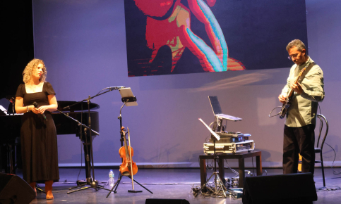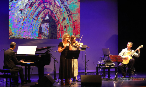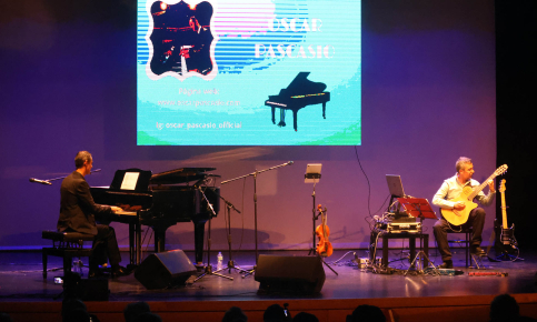Con más de media entrada en el patio de butacas, la Casa de la Cultura acogió en la tarde del sábado 18 de abril un extraordinario concierto de música instrumental, de estilo «new age», protagonizado por dos grandes compositores e intérpretes: el pianista palentino Óscar Pascasio, y el ingeniero y guitarrista de Cabanillas del Campo José Luis Serrano. Pascasio y Serrano se hicieron acompañar además de una extraordinaria violinista, la alcarreña Sandra López Sardina, y también participó en el evento la rapsoda y poeta cabanillera Ana Yela «Anafragmas», para componer entre los cuatro un intenso espectáculo poético-musical que se extendió por algo más de hora y media.