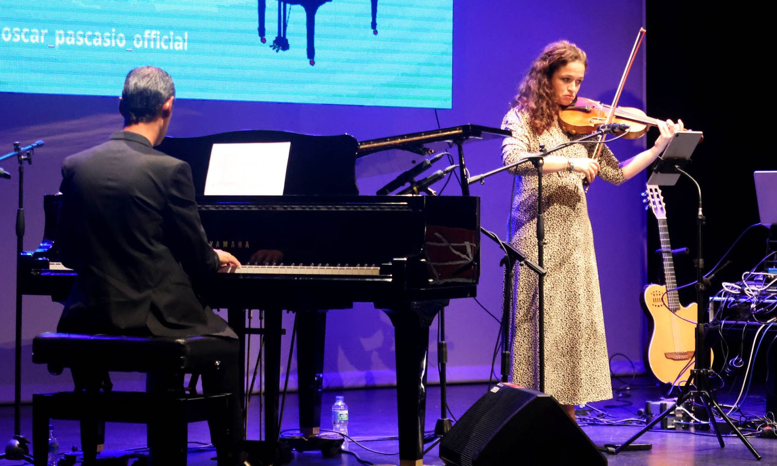 Tras estas dos colaboraciones, llegó la parte central del concierto, con la presencia en Cabanillas del pianista Óscar Pascasio (Aguilar de Campoo, 1974), quien debutaba en la localidad. Pascasio es un extraordinario compositor y pianista new age, con una sólida trayectoria como intérprete y docente dentro del ámbito de la música clásica contemporánea. Formado en el Conservatorio Superior, inició desde joven una intensa actividad concertística, compaginando su faceta artística con la enseñanza, y una fuerte vinculación con su entorno cultural. Su carrera discográfica arrancó en 2013 con «La ribera del Pisuerga», una obra inspirada en su tierra que marcaría el inicio de su proyección más allá del ámbito local. El reconocimiento internacional llegó a partir de 2015, cuando su música empezó a difundirse en circuitos internacionales, especialmente en Estados Unidos.