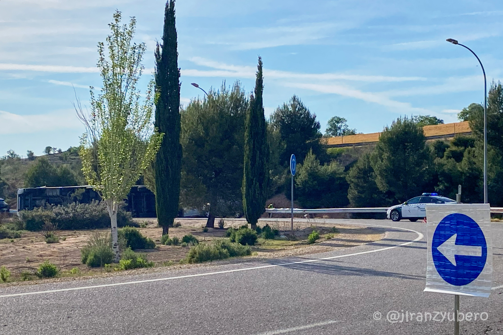 Por el momento no ha trascendido información oficial sobre las causas del accidente ni sobre posibles daños personales. La incidencia se ha registrado en un punto de conexión entre la CM-10, la A-2 y la bajada hacia la Ronda Norte, una zona de tránsito habitual en los accesos a la ciudad y en la que no es la primera vez que ocurre algo similar. En octubre del año pasado ya volcó un tráiler cargado con productos cárnicos en el mismo punto.