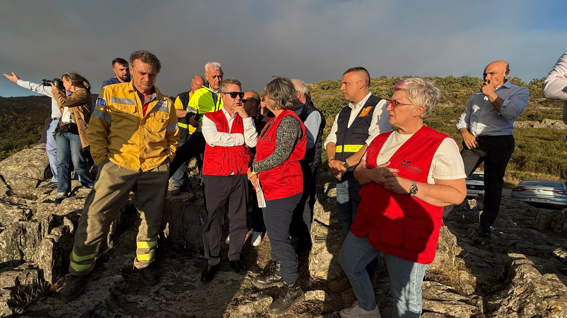 El presidente de Castilla-La Mancha está visitando la zona afectada por el incendio del Pico del Lobo, en la Sierra Norte de Guadalajara, acompañado por la consejera de Desarrollo Sostenible, Mercedes Gómez; la delegada de la Junta en Guadalajara, Rosa María García; y el presidente de la Diputación Provincial, José Luis Vega.