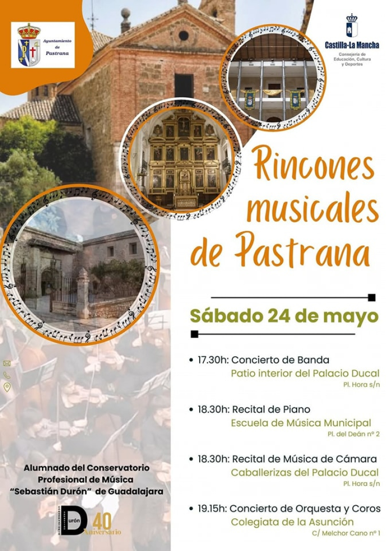 Organizado por el Conservatorio Profesional de Música “Sebastián Durón” de Guadalajara, con la colaboración del Ayuntamiento de Pastrana y la Consejería de Educación, Cultura y Deportes de Castilla-La Mancha, este evento forma parte del programa del 40º aniversario del centro musical y busca acercar la música clásica al entorno rural y monumental.