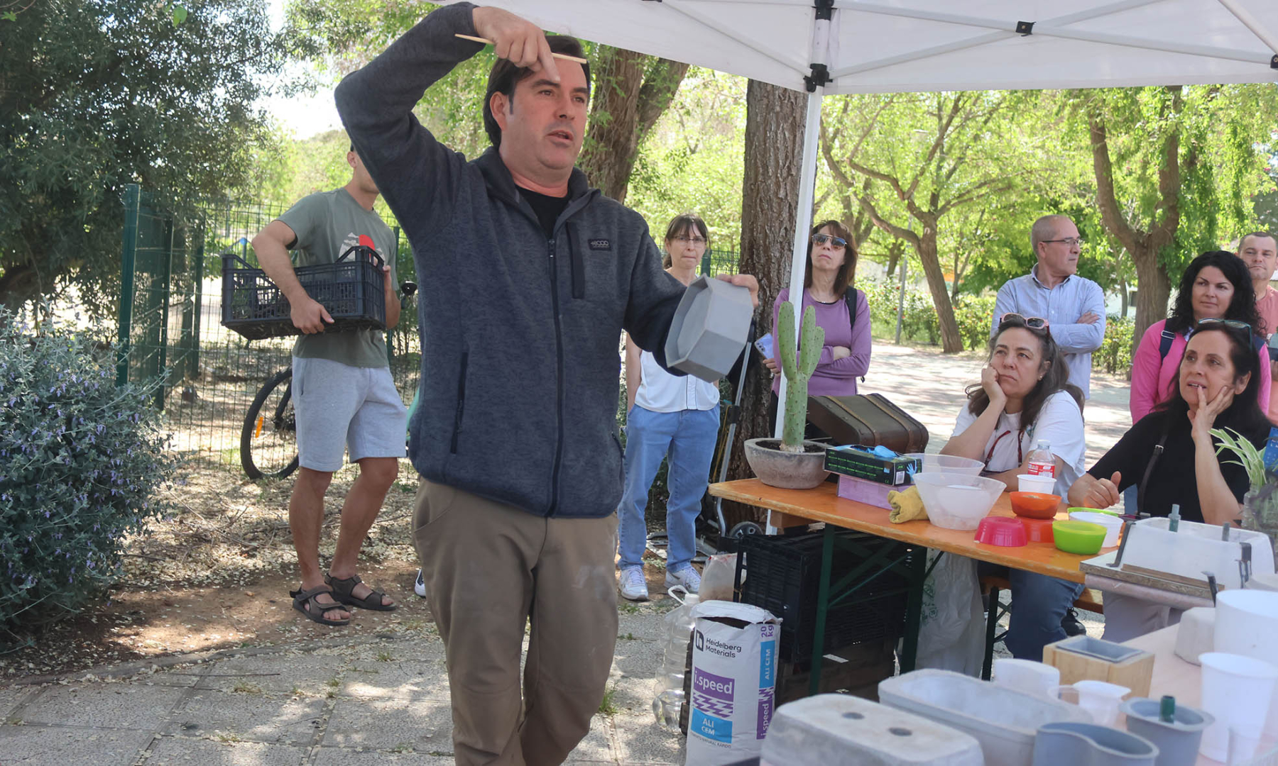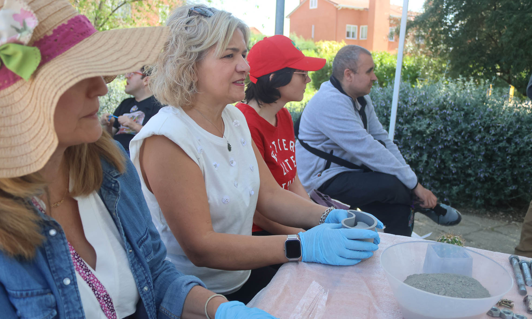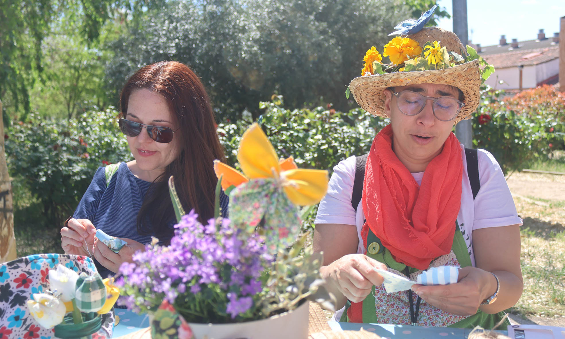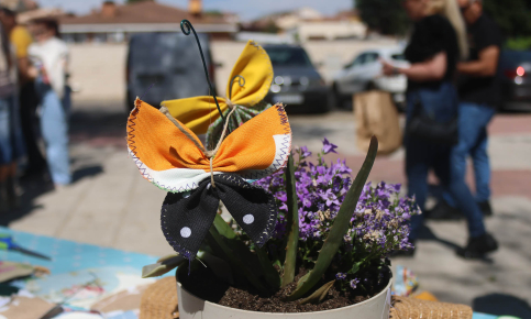 Además del mercadillo, la cita se completó con dos interesantes talleres paralelos: uno sobre fabricación de maceteros de cemento, y otro sobre elaboración de mariposas de tela, que estuvieron también muy animados y concurridos.
