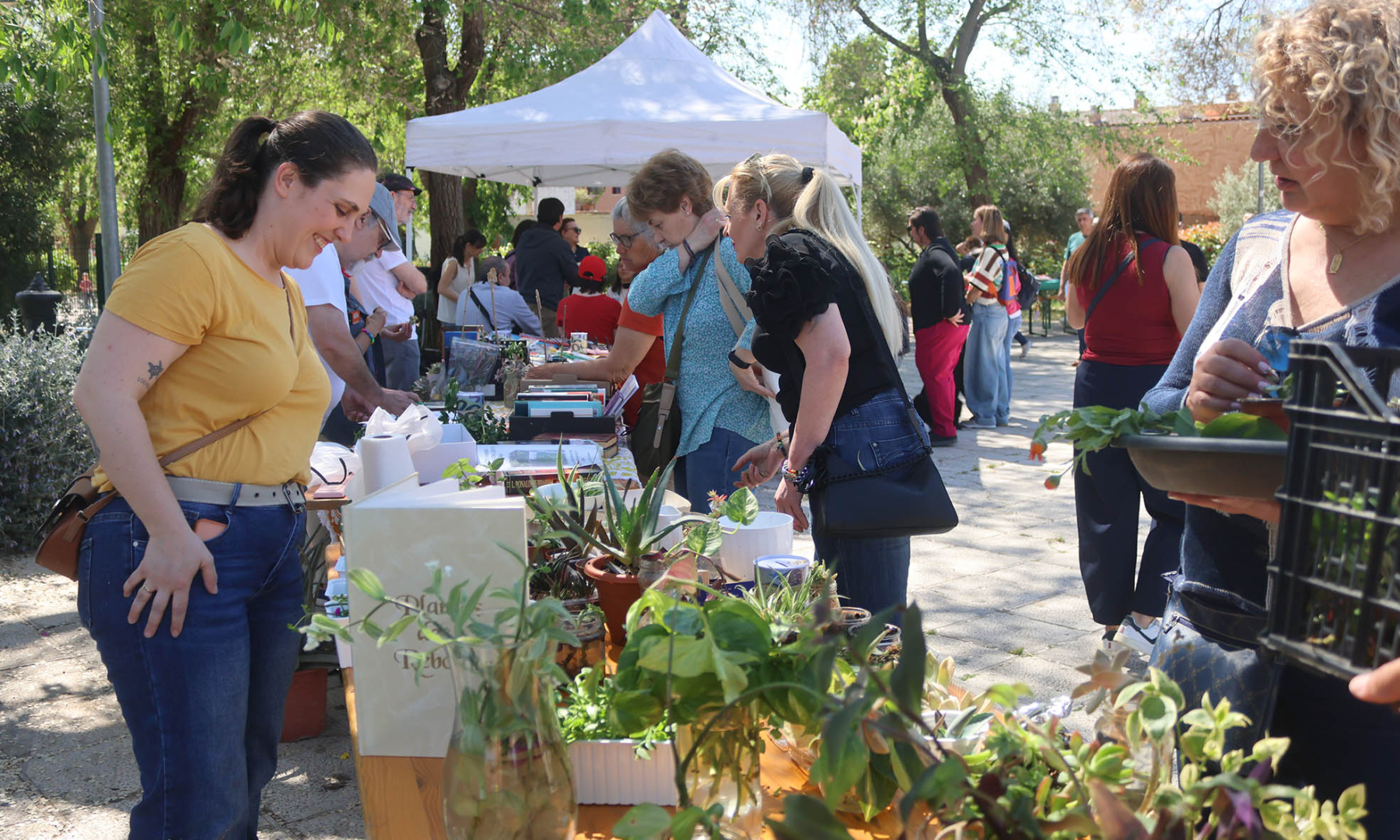 Con muchísima animación se celebró en la mañana de este sábado 18 de abril el «II Encuentro de Plantas y Libros» de Cabanillas. Organizado por la «Asociación Plan B» de la localidad, la cita consistía en un mercadillo de intercambio de plantas (fundamentalmente, esquejes e hijuelos) y también de literatura, en una jornada que se extendió durante tres horas en una radiante mañana primaveral en el Parque Buero Vallejo.