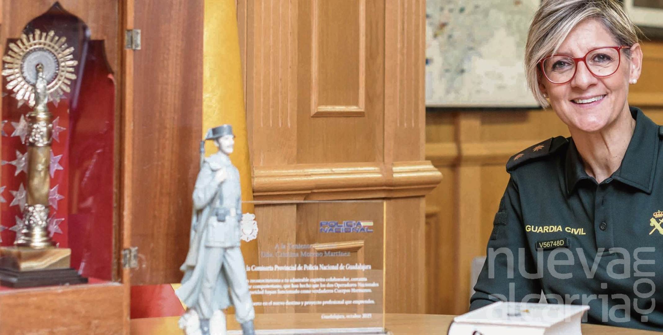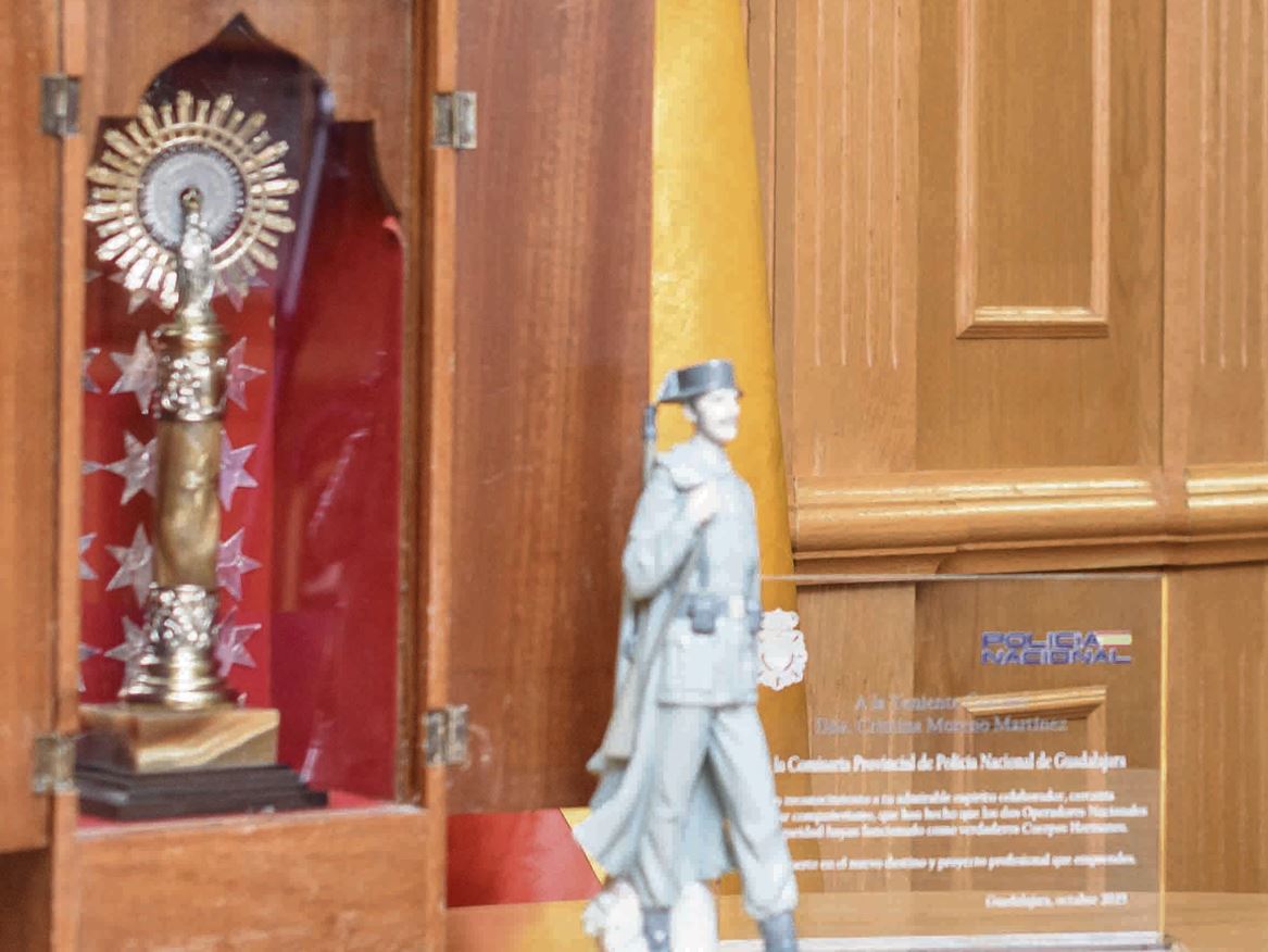 Tengo que decirle que tiene más años. Me la obsequiaron hace tiempo, pero, como puede ver, la tengo en cada rincón de mi despacho. Creo que más allá de la creencia religiosa de cada uno, es la que de verdad nos protege a todos. Seamos o no creyentes. Con su manto maravilloso y con ese pilar que sigue sosteniendo a la Guardia Civil tantos años después.