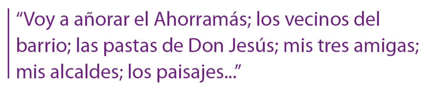 Voy a añorar el Ahorramás, que es el punto de encuentro entre los vecinos de la Comandancia, con los vecinos de la avenida Castilla, con este barrio; mi parroquia de San Antonio, otro punto de encuentro con gente más mayor; que Don Jesús nos ofrezca una pasta al finalizar la misa. Además, allí me encuentro a muchos de mis guardias veteranos. De los que muchos me tutean ya y eso a mí me encanta. Me hacen sentir como una hija, sin esa coraza verde que es el uniforme. Voy a echar de menos cruzar la A2 y tener el campo tan cerca, que me da tanta vida; en cada momento del año… ves cómo van creciendo los pastos, cómo se va poniendo verde bonito, luego pasa ese amarillo y me encanta.