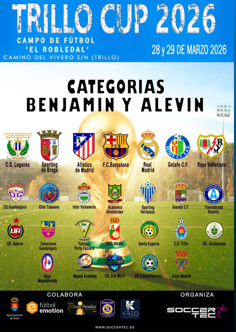 El municipio de Trillo volverá a convertirse en el epicentro del fútbol base nacional los días 28 y 29 de marzo. La novena edición de la Trillo Cup reunirá a más de 600 niños y niñas de entre 8 y 11 años en el campo municipal El Robledal, consolidándose como una de las citas deportivas más prestigiosas de la provincia de Guadalajara.