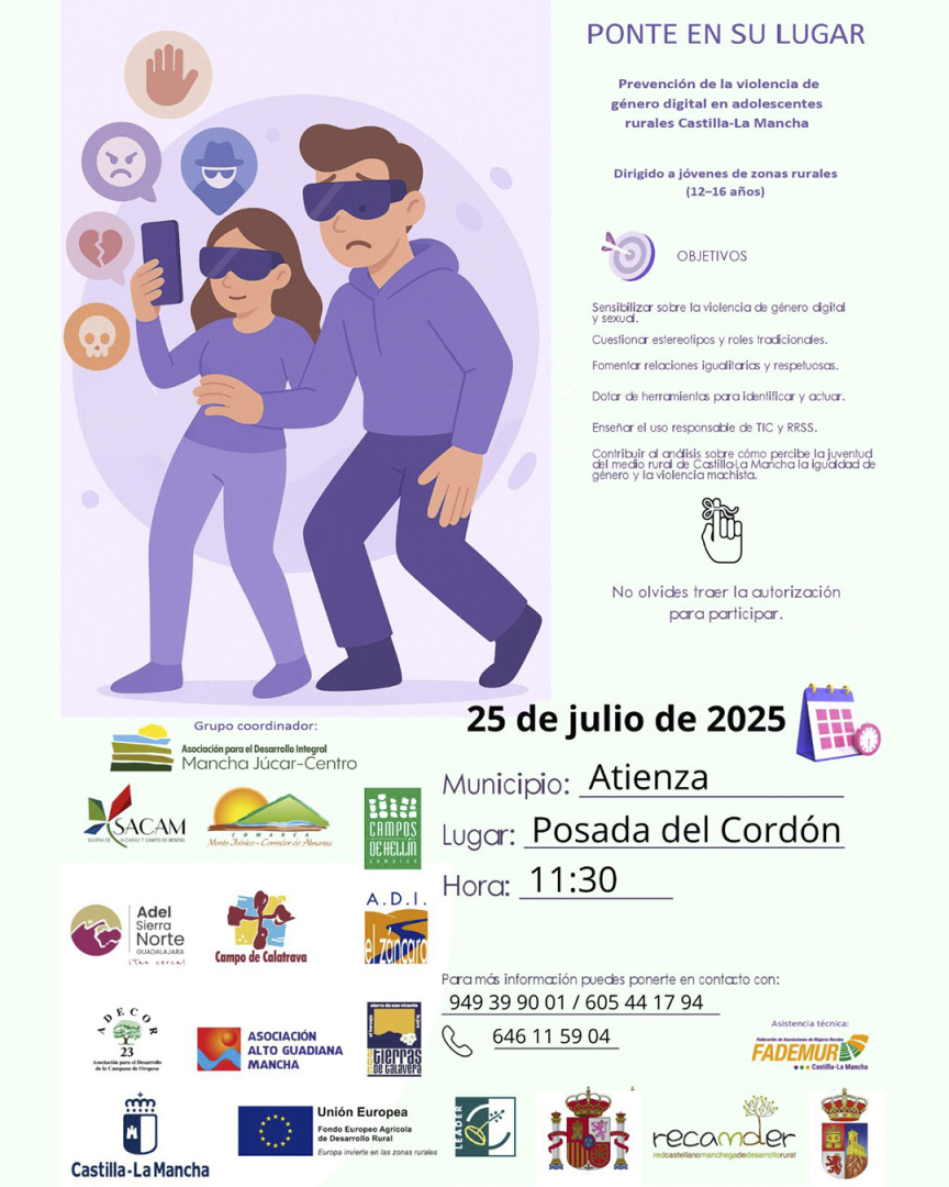 El proyecto “Ponte en su lugar” ya ha llegado a más de 500 adolescentes de toda Castilla-La Mancha y se encuentra en su fase central, con la previsión de alcanzar hasta 800 participantes en una treintena de municipios. La actividad está financiada con fondos LEADER dentro de la reprogramación extraordinaria del Programa de Desarrollo Rural 2014-2022, cofinanciado por la Unión Europea, el Ministerio de Agricultura, Pesca y Alimentación y la Junta de Comunidades de Castilla-La Mancha.