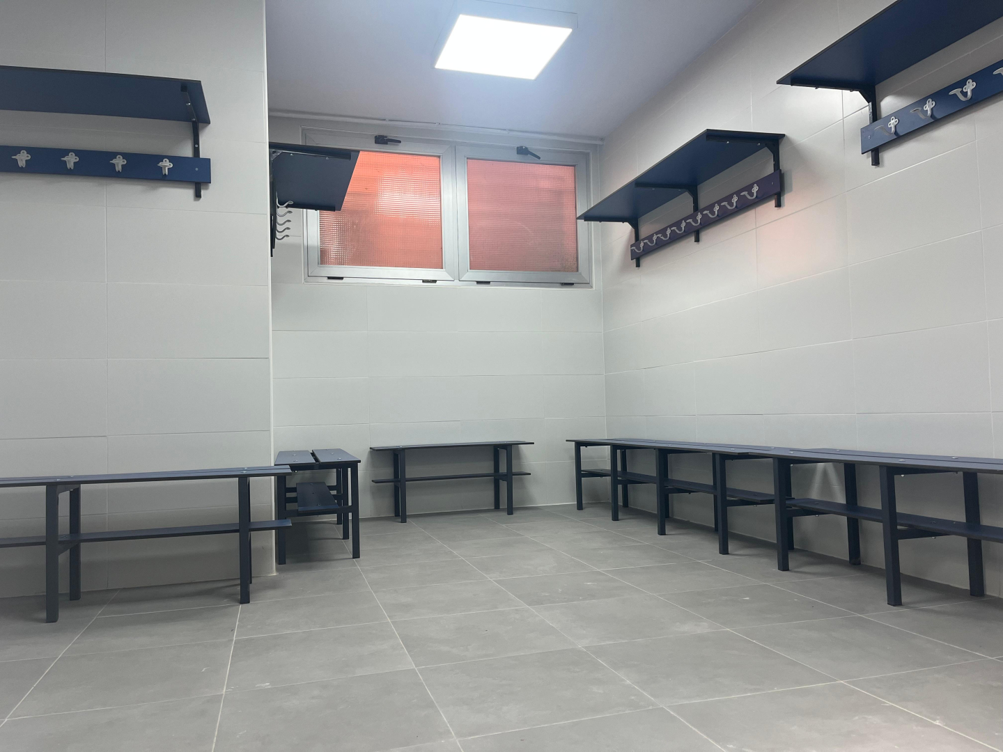 La segunda fase, recientemente finalizada, ha abordado la rehabilitación de toda la planta baja, incluyendo la reforma integral de los tres vestuarios (con baños, duchas, lavabos, espejos, puertas, bancos, alicatado y pintura), la ampliación del aseo accesible, la sustitución de luminarias para mejorar la eficiencia energética y la renovación de las puertas principales del edificio.