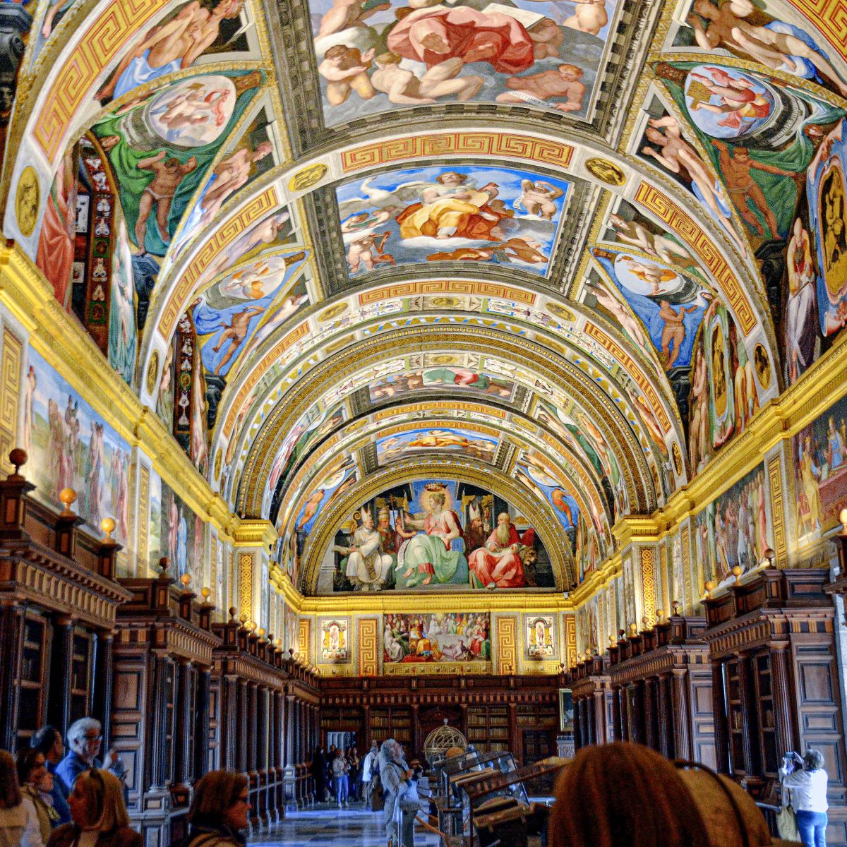 A quien no haya visitado todavía la Biblioteca del Monasterio de El Escorial, se lo recomiendo con vehemencia: es el lugar más impresionante que un lector y amante de los libros pueda visitar en nuestro país. Un gran salón situado en el frontal principal del monasterio, de 54 metros de largo, 9 de ancho y 10 de alto, con suelos de mármol, estanterías en maderas nobles, y un complejo programa de pinturas en sus bóvedas. Todo en ella es grandioso, espectacular, cargado de mensajes y simbolismos. A los que añaden los miles de libros, manuscritos y piezas de arte y ciencia que la componen.