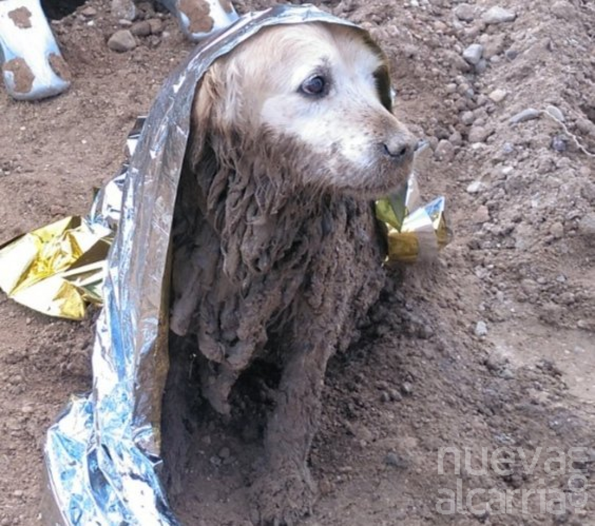 La actuación de los agentes de la Guardia Civil logró evitar un trágico final, ya que el perro presentaba evidentes síntoma de hipotermia en el momento de ser rescatado.