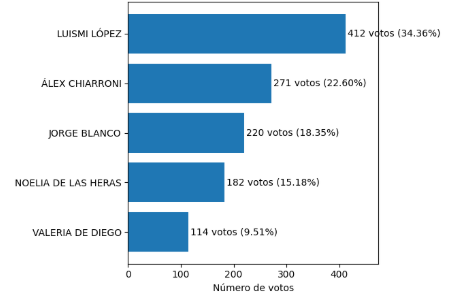 A los votos finales se deberán sumar los que teníamos registrados antes de detectar la incidencia informática que obligó a detener de forma momentánea el concurso: Luismi López (+412), Álex Chiarroni (+271), Jorge Blanco (+220), Noelia de las Heras (+182) y Valeria de Diego (+114).