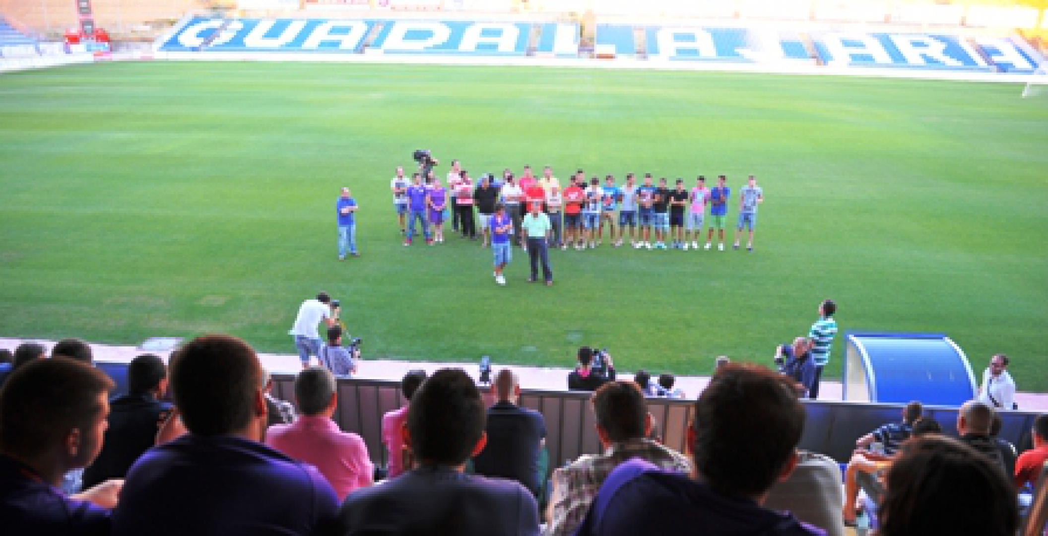 El presidente del Club Deportivo Guadalajara, Germán Retuerta, compareció esta tarde ante la afición en el Pedro Escartín para explicar todo lo referente al descenso administrativo a Segunda División B y a la situación del club. El directivo morado estuvo acompañado en todo momento por el nuevo preparador del primer equipo, Carlos Pérez Salvachúa, que centró su intervención en el futuro proyecto deportivo de la entidad alcarreña, y anunció que si se llega a los 7000 abonados, dará una acción del Depor a cada uno de ellos.