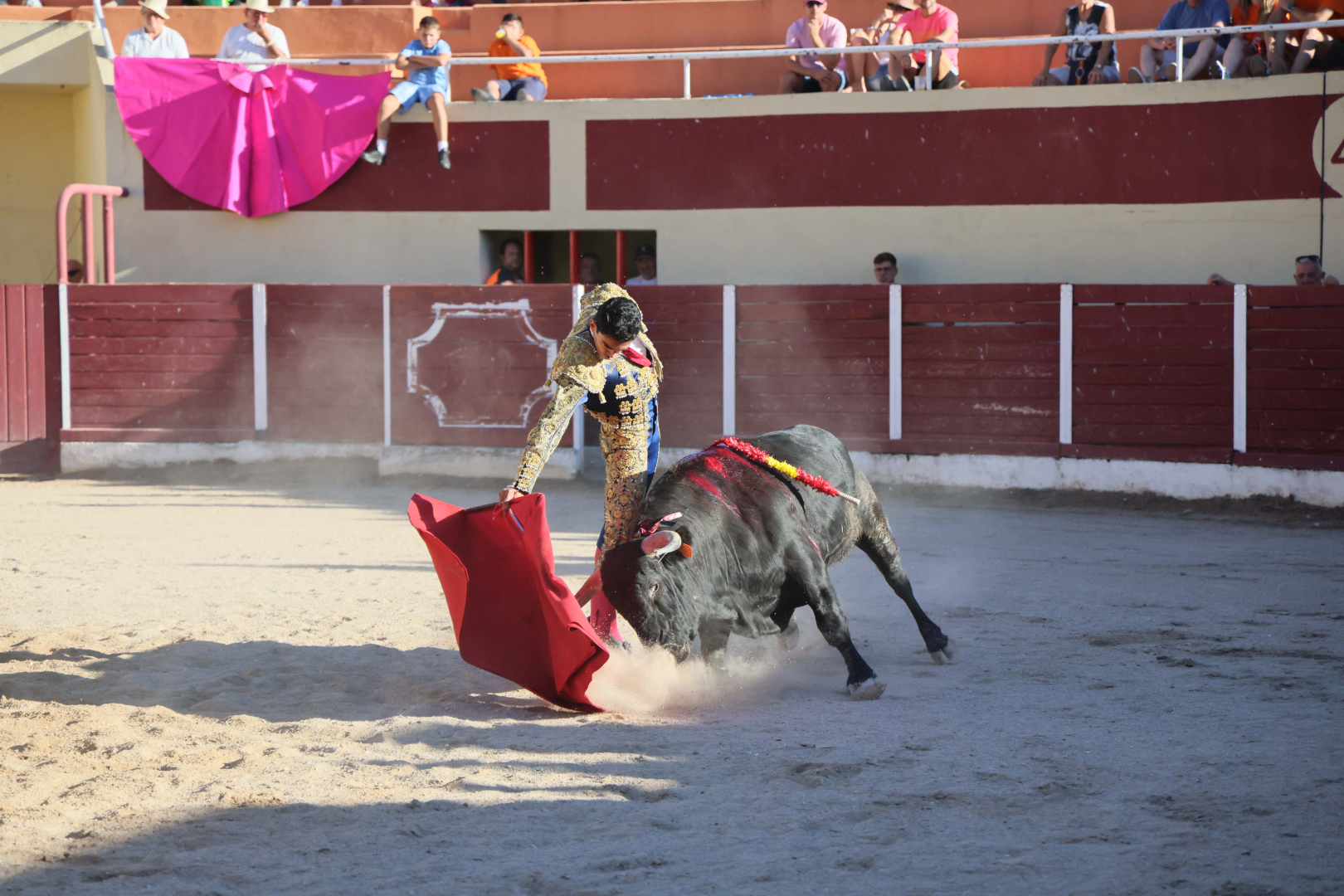 El buen ambiente en la plaza y la calidad del ganado animaron a la presidencia a ordenar la salida de un sobrero: “Ciruelo”, número 29, negro, de la ganadería de Ana Isabel Vicente García. El novillero ecuatoriano Arias Samper, sobresaliente de la tarde, lo lidió con entrega y variedad, destacando en verónicas, naturales y derechazos. La estocada definitiva le permitió cortar dos orejas y dar la vuelta al ruedo, besando al novillo en señal de respeto. “Torear en Almonacid es sentirme en casa. Esta gente me ha arropado siempre y salir a hombros de La Coqueta es un sueño cumplido”, declaró tras el festejo.
