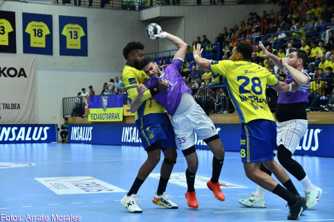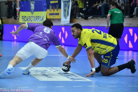 Buena muestra de las ganas de dar la sorpresa con las que se presentó el conjunto guadalajareño en Irún, fueron los primeros minutos del partido. Con un parcial de 0-3 avisó al Bidasoa de que las cosas no iban a ser nada fáciles para los hombres de Álex Mozas. Gracias a las paradas de Nico García y los goles de Gorostidi y Velasco, el Sanicentro afianzó su efectividad inicial y mantuvo ventajas en el marcador hasta bien avanzada la primera parte. Hubo que esperar al minuto 18 para ver al cuadro amarillo por delante. Poco a poco fue mejorando el equipo irundarra y de la mano de Xavi González la balanza se inclinó hacia el lado del Bidasoa. El extremo zurdo anotó tres tantos prácticamente seguidos para colocar el 8-7 y, a partir de ahí, ya no perdió el mando del resultado el cuadro guipuzcoano. Juan Carlos Requena solicitó tiempo muerto con 10-7 para afianzar la defensa y de nuevo se apretaron los guarismos en Artaleku (11-9, min. 25). Buena culpa de esa reacción hay que dársela al joven central catalán Joan Blanco. El jugador formado en la cantera del Barça tiró de calidad y, ayudado por Ganuza y Gorostidi, impulsó de nuevo a su equipo. Nevado y Esteban Salinas apaciguaron un poco la rebelión del cuadro morado y gracias a un tanto de Elkhouga el choque llegó al descanso con 15-12.
