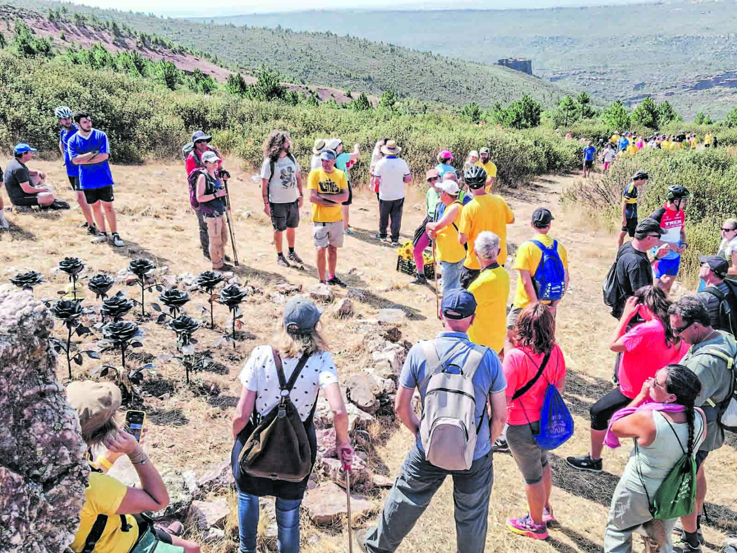 Pero sin duda el momento más especial fue el sencillo pero sentido homenaje a las personas que perdieron la vida en el incendio. Tras unas palabras de recuerdo, ciclistas y senderistas guardaron un minuto de silencio en el lugar donde fallecieron los miembros del retén, en el que se les recuerda con 11 rosas de acero y sus nombres grabados en una placa. Depositaron una ofrenda de flores, concretamente girasoles que representan muy bien al territorio, y el sonido de la dulzaina ha puesto la banda sonora a un momento muy íntimo en el que ha sido difícil contener las emociones.