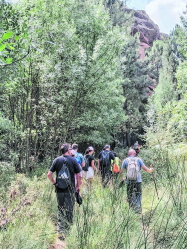 La ruta, que tenía como destino la Cueva de los Casares, en el término municipal de Riba de Saelices, donde hace 20 años comenzó un incendio que arrasó 13.000 hectáreas, se cobró la vida de 11 miembros del retén de Cogolludo que participaban en las labores de extinción y dejó gravemente herido a un bombero de Arcos de Jalón, ha transcurrido por parte de los pinares que fueron arrasados y por el valle de Los Milagros. Un recorrido que, bien pedaleando o caminando, ha permitido observar los frutos de la regeneración del monte, así como descubrir o volver a disfrutar de las espectaculares formaciones rocosas rojizas de Los Milagros.