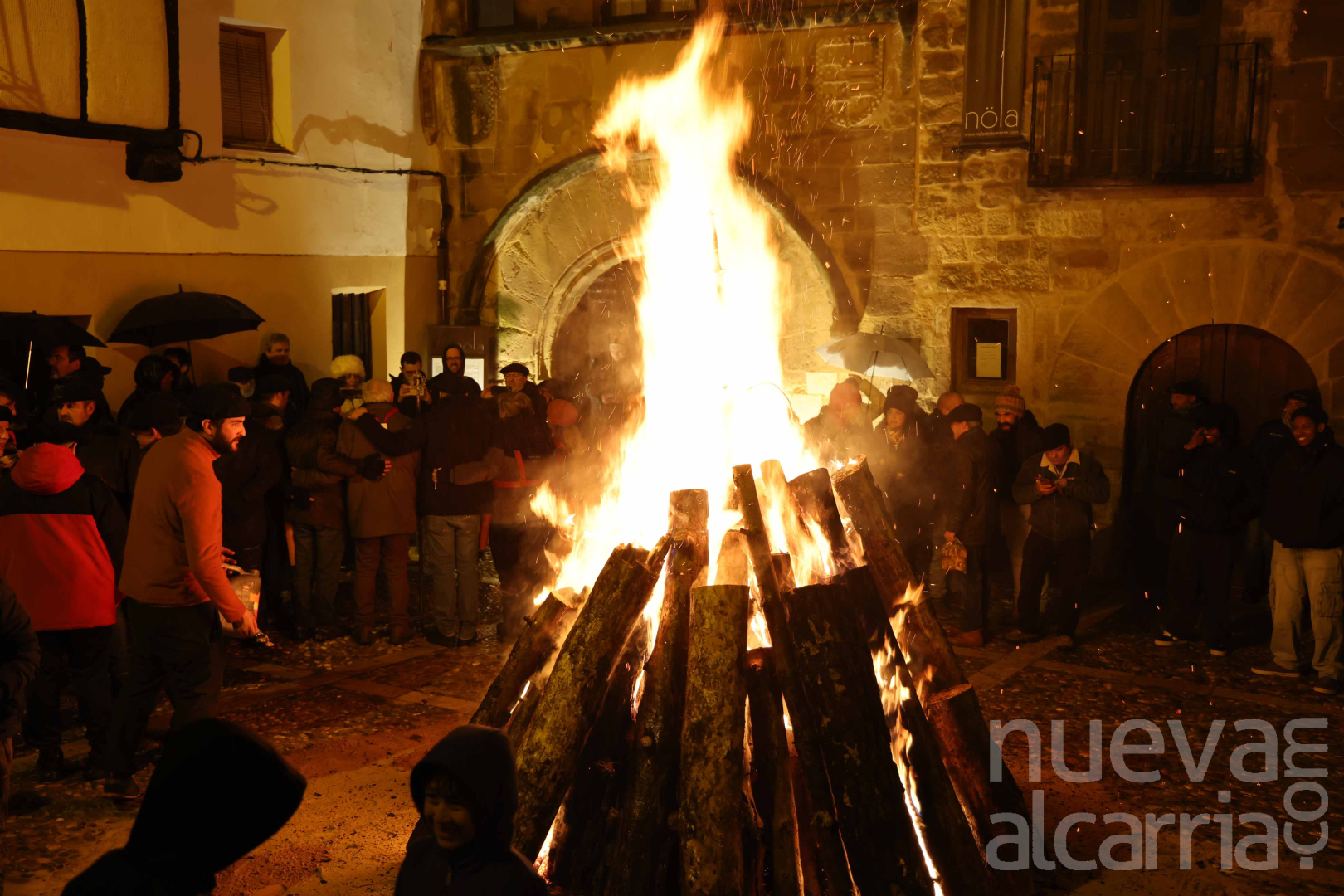 Concluido el oficio religioso, el hermano mayor saliente, Jesús Canfrán, y los párrocos de San Vicente, Jesús de las Heras y el propio Juan Antonio Marco, se dirigieron a la plaza del mismo nombre acompañados por la dulzaina y el tamboril, para proceder a la bendición de la hoguera. Justo antes de su encendido, se guardó un emotivo minuto de silencio en memoria de las víctimas del accidente de Adamuz.