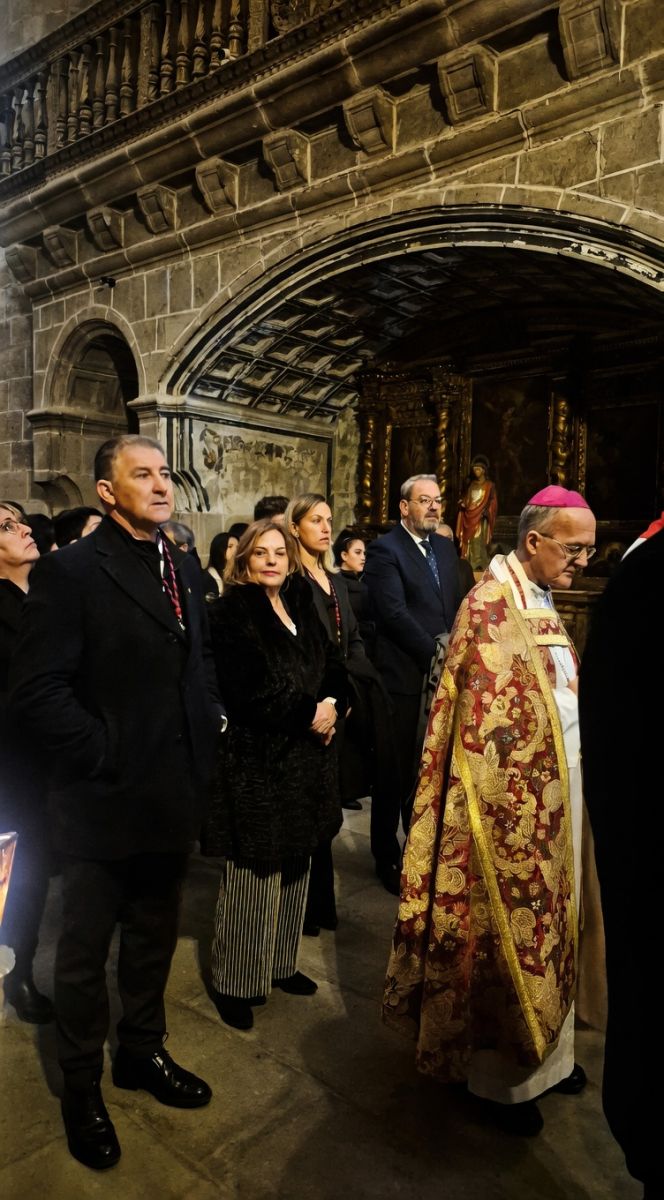 El cuerpo de Jesús fue descendido lentamente, presentado ante su Madre, la Virgen de la Soledad, y colocado con devoción en la urna del Santo Sepulcro. Este acto, recuperado hace años tras siglos de ausencia, llenó el templo de un silencio cargado de emoción y recogimiento, con la luz tenue de los cirios iluminando las naves góticas.