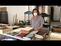 Cuando un documento llega al taller de Carlos, lo primero que hace desmontar la encuadernación “Ya hemos llegado al cuerpo del libro en sí, y ahora tenemos dos partes diferenciadas, que trabajaremos por separado.” Así, la encuadernación original como no es funcional se pondrá encima de la nueva. Estas cubiertas se fabrican con pieles de cabra de distintos colores, e incluso papeles. “Estos papeles los compro a una vieja amiga catalana, cuyos diseños son exclusivos y muy costosos”. Las pieles las corta con una chifla para hacer el reborde, “todo lo hago de forma tradicional”.
