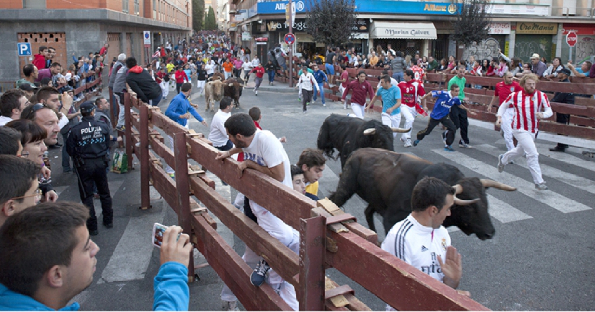 Muchísima gente en el segundo encierro de toros con ganado de Jandilla, posiblemente el más interesante taurinamente hablando, de las ferias. No ha habido heridos, pero si momentos de interés. Un toro ha estado a punto de saltar las tablas a la altura de Sanidad (Paseo de Fernández Iparraguirre).