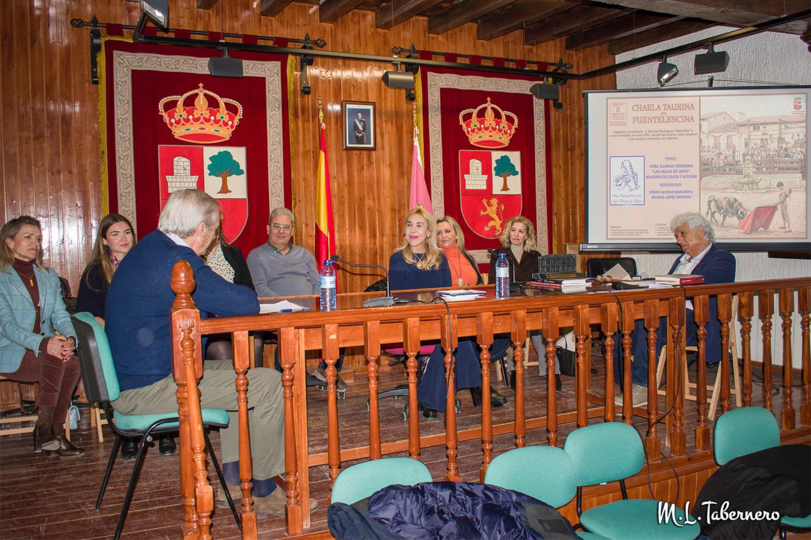 La mañana arrancó a las 12:30 horas en el Salón de Plenos del Ayuntamiento con la conferencia "Mujeres de casta y afición", impartida por miembros de la Peña Taurina Femenina “Las Majas de Goya” (fundada en 1994 y dedicada a fomentar la afición taurina entre mujeres y difundir la cultura del toro). Moderada por Pedro Alonso Marañón y Manuel López Rodrigo, la charla puso el foco en el papel de la mujer como voz experta, guardiana y promotora del patrimonio taurino, con tributos a figuras como Manolete e Iván Fandiño. La peña, reconocida por su rigor y por otorgar premios anuales a triunfadores de la temporada, destacó la presencia femenina en los tendidos.