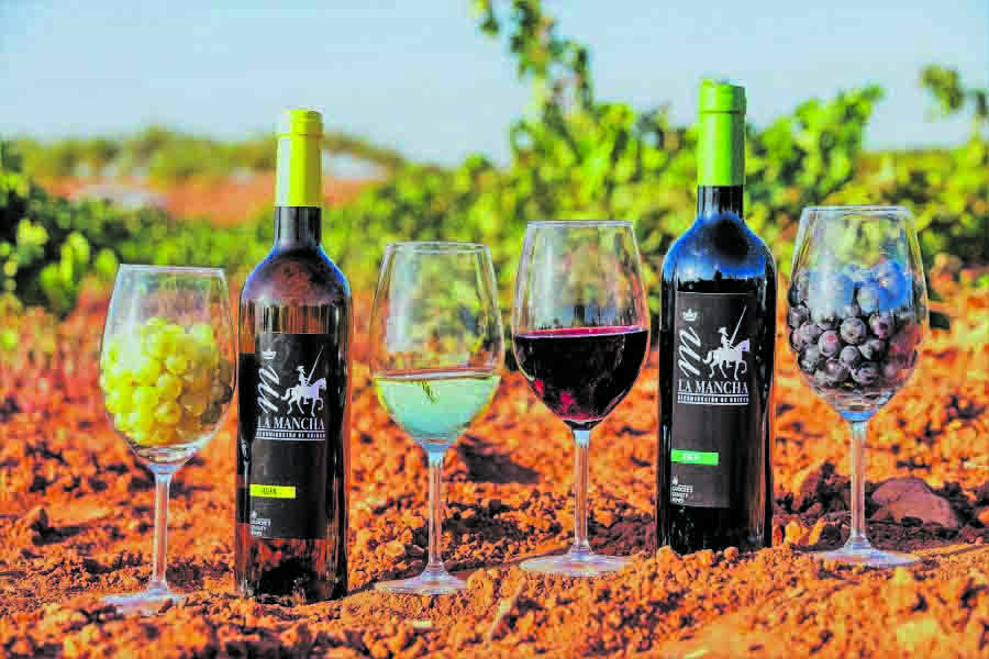 La D.O.P. La Mancha, la denominación de origen más extensa de España, abarca territorios de las provincias de Albacete, Ciudad Real, Cuenca y Toledo. Los viñedos se extienden sobre una llanura a una altitud media de 600 a 800 metros, con suelos calizos y un clima continental extremo.