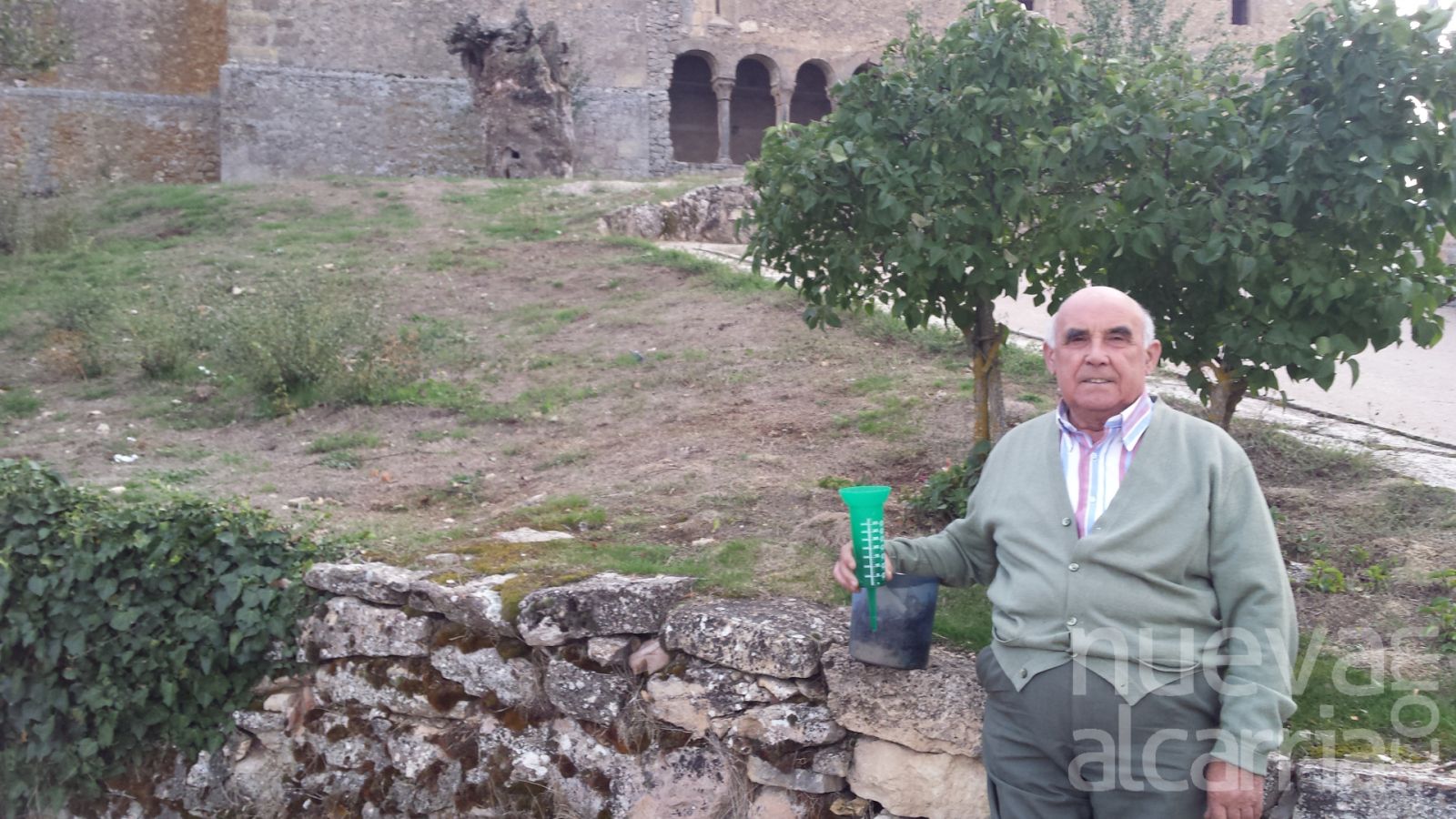 Juan Ángel Bueno Huerta, agricultor de 82 años que vive en Tortonda, una pequeña pedanía de Alcolea del Pinar, no ha fallado ni un solo día desde el 3 de marzo de 1995. Cada mañana sale al corral, mira su pluviómetro y anota con precisión la cantidad de precipitaciones que caen en forma de lluvia, nieve o granizo.