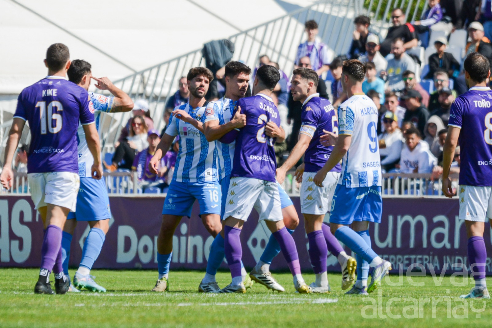 El Talavera, bien plantado, logró incomodar al Guadalajara y llevar el partido a un terreno más trabado. La tensión fue en aumento y tuvo su momento álgido en el minuto 34, con una tangana entre varios jugadores que se saldó con dos cartulinas amarillas y el enfado de la afición local, también crítica con algunas decisiones arbitrales.