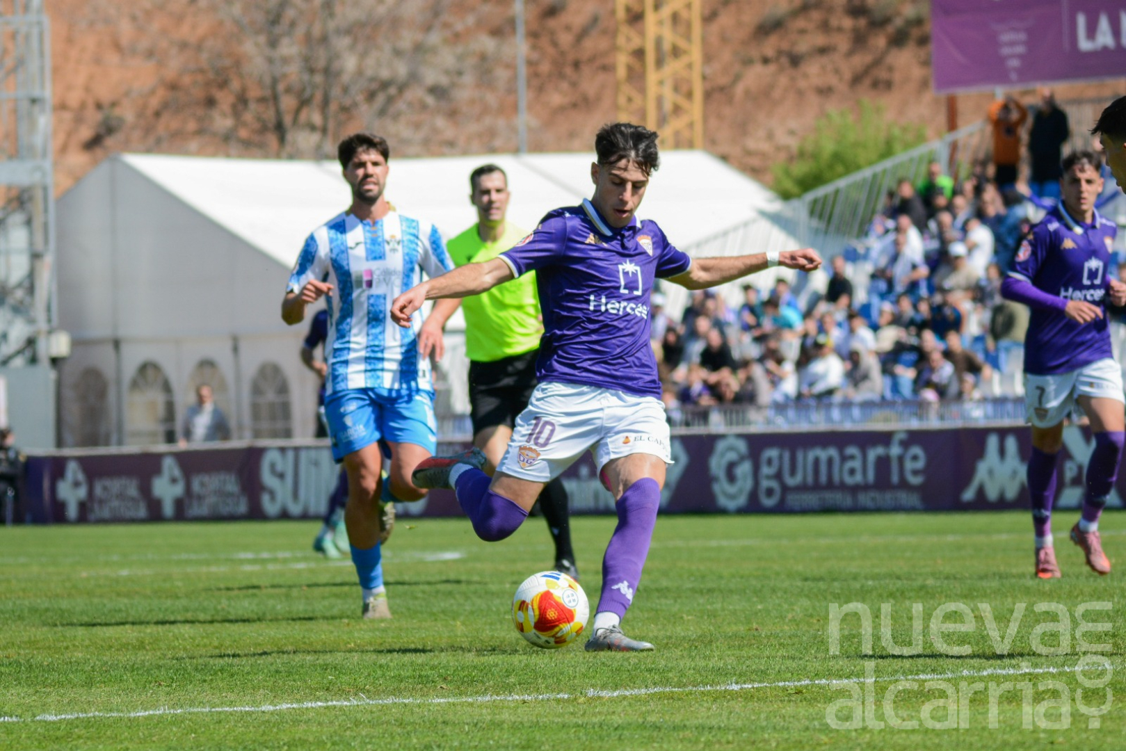 Lejos de venirse abajo, los morados reaccionaron. La mejor ocasión de la primera mitad llegó en el minuto 16, cuando Neskes filtró un gran pase a Unax, que no acertó en el mano a mano ante el portero. La grada, prácticamente llena, empujaba a un equipo que, pese a perder presencia ofensiva con el paso de los minutos, no dejaba de intentarlo.