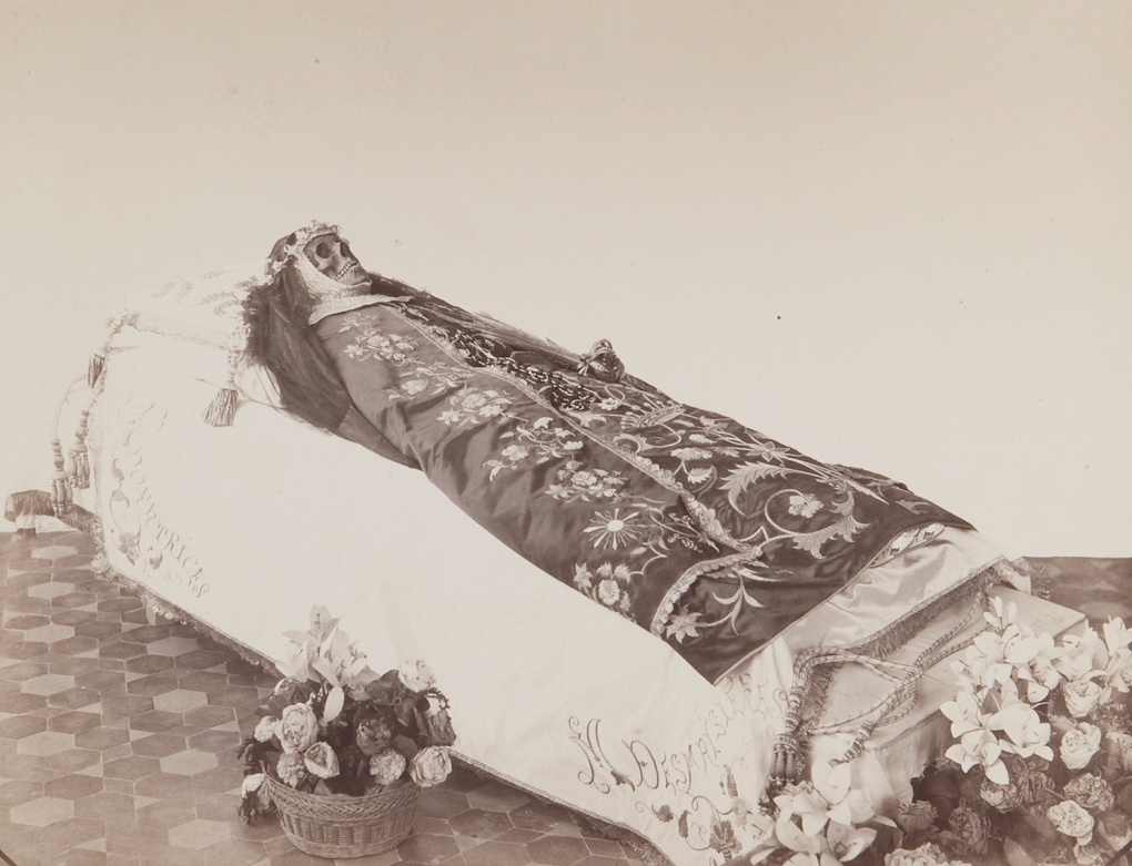 Fotografía de Antonio García Peris que muestra el cuerpo de María Micaela tras su exhumación en 1891.