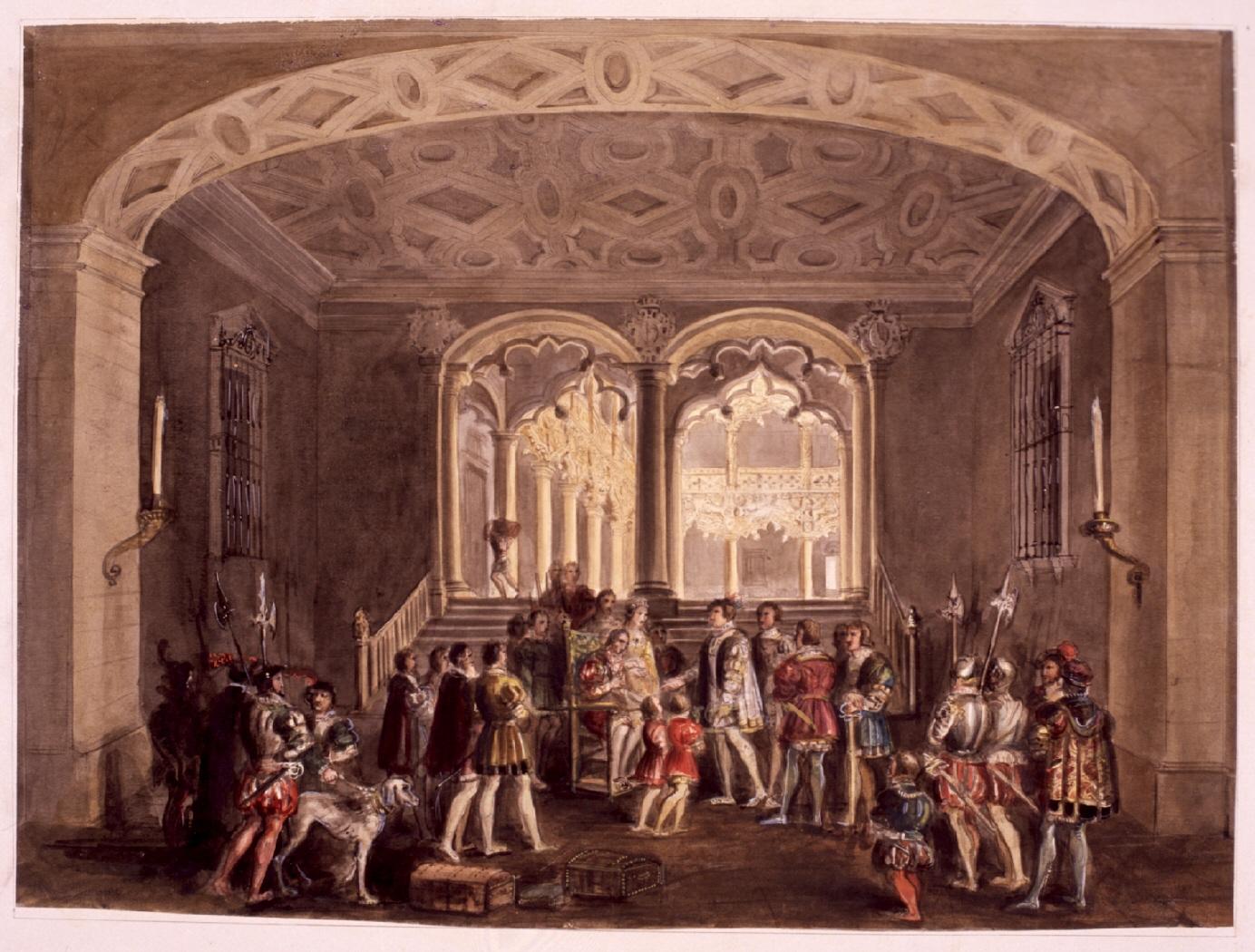 Escena histórica en el Palacio del Infantado de Guadalajara, 1837.Valentín Carderera. Museo Lázaro Galdiano.