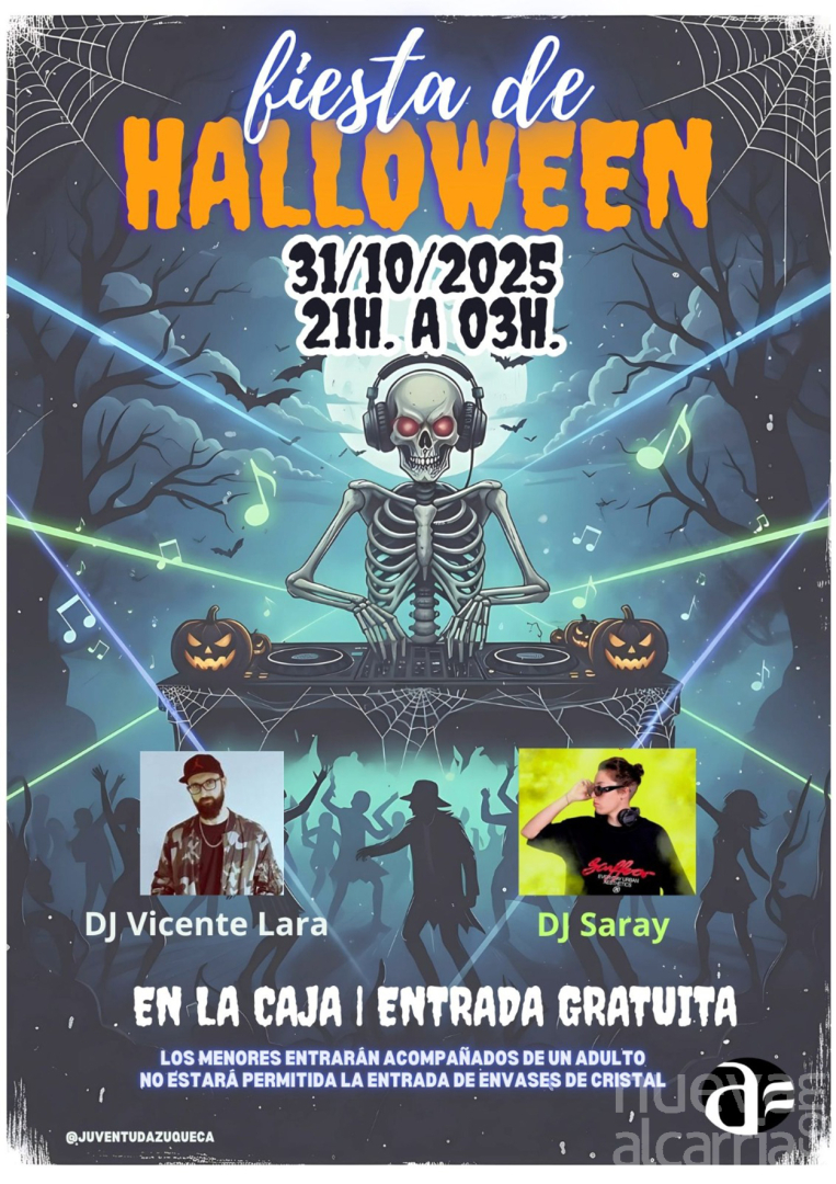 Además, este Halloween habrá una fiesta en La Caja, dese las 21 horas, hasta las 3 de la madrugada, con los DJ Vicente Lara y Saray. "Será una discomóvil de Halloween abierta a la participación libre de cualquier persona -los menores deberán ir acompañados", explica la concejala, que adelanta además que "no se permitirá introducir envases de cristal al interior".