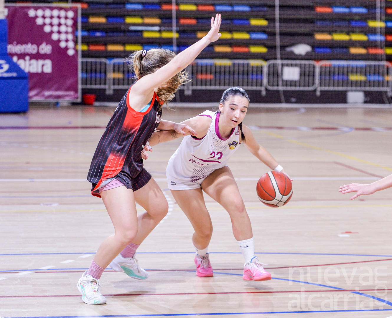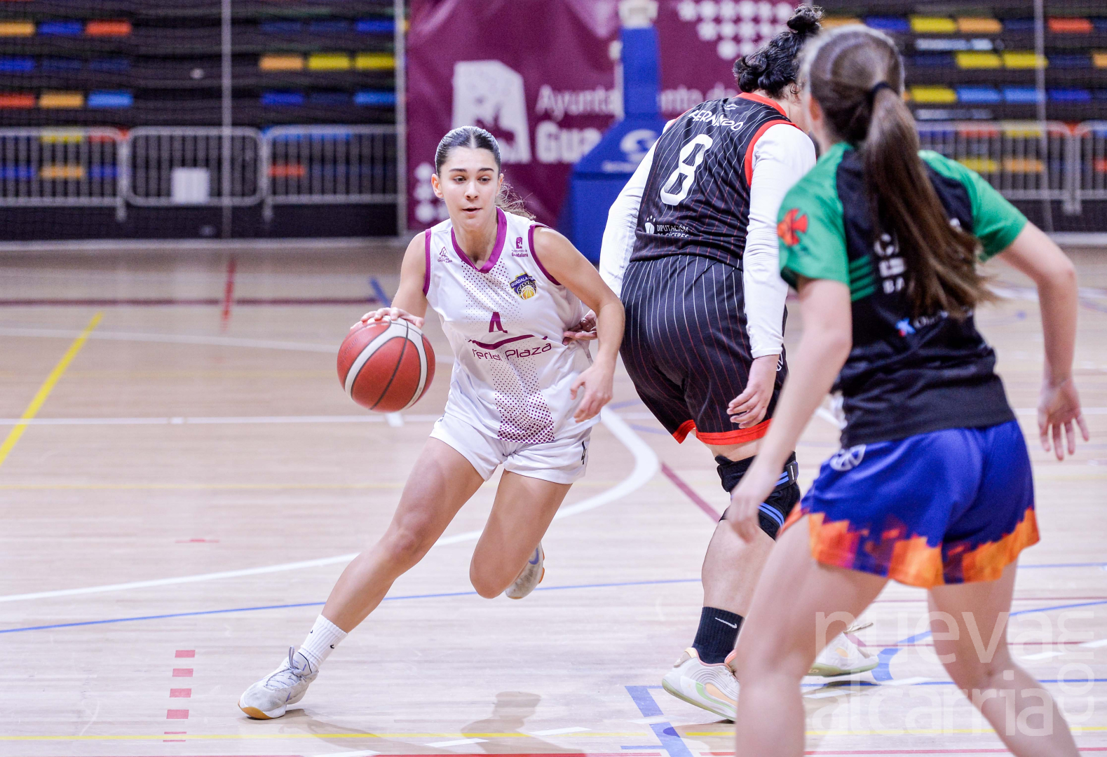 El equipo morado comenzó mandando desde el inicio, con buenas sensaciones en ambos lados de la pista. Un triple de Duna Regalado, la intensidad defensiva que permitió correr y un acierto inicial que culminó Marina Salamanca desde el perímetro dejaron un 15-9 al término del primer cuarto. En el segundo, el conjunto extremeño reaccionó con un 0-6 que equilibró el choque, pero de nuevo apareció la inspiración de Natalia Moya —con una canasta y un triple consecutivos— para recuperar la ventaja alcarreña. Al descanso, el 25-20 reflejaba el buen trabajo local.