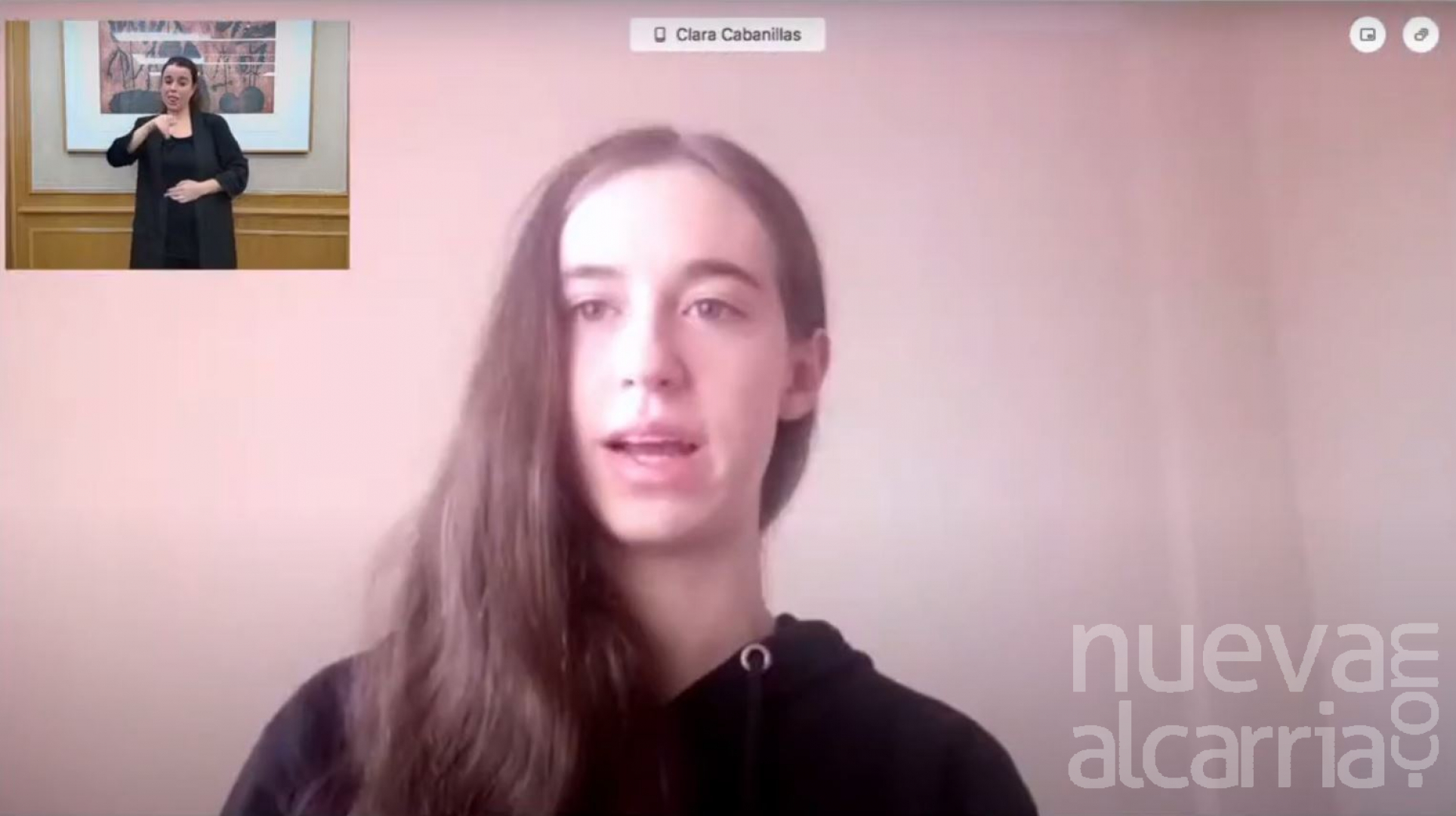 Clara participó durante espacio de una hora, en la llamada "Consulta con niños, niñas y adolescentes sobre la estrategia de Desarrollo Sostenible", una actividad organizada por la Vicepresidencia de Derechos Sociales, y que presidió la secretaria de Estado de Agenda 2030, Ione Belarra Urteaga.