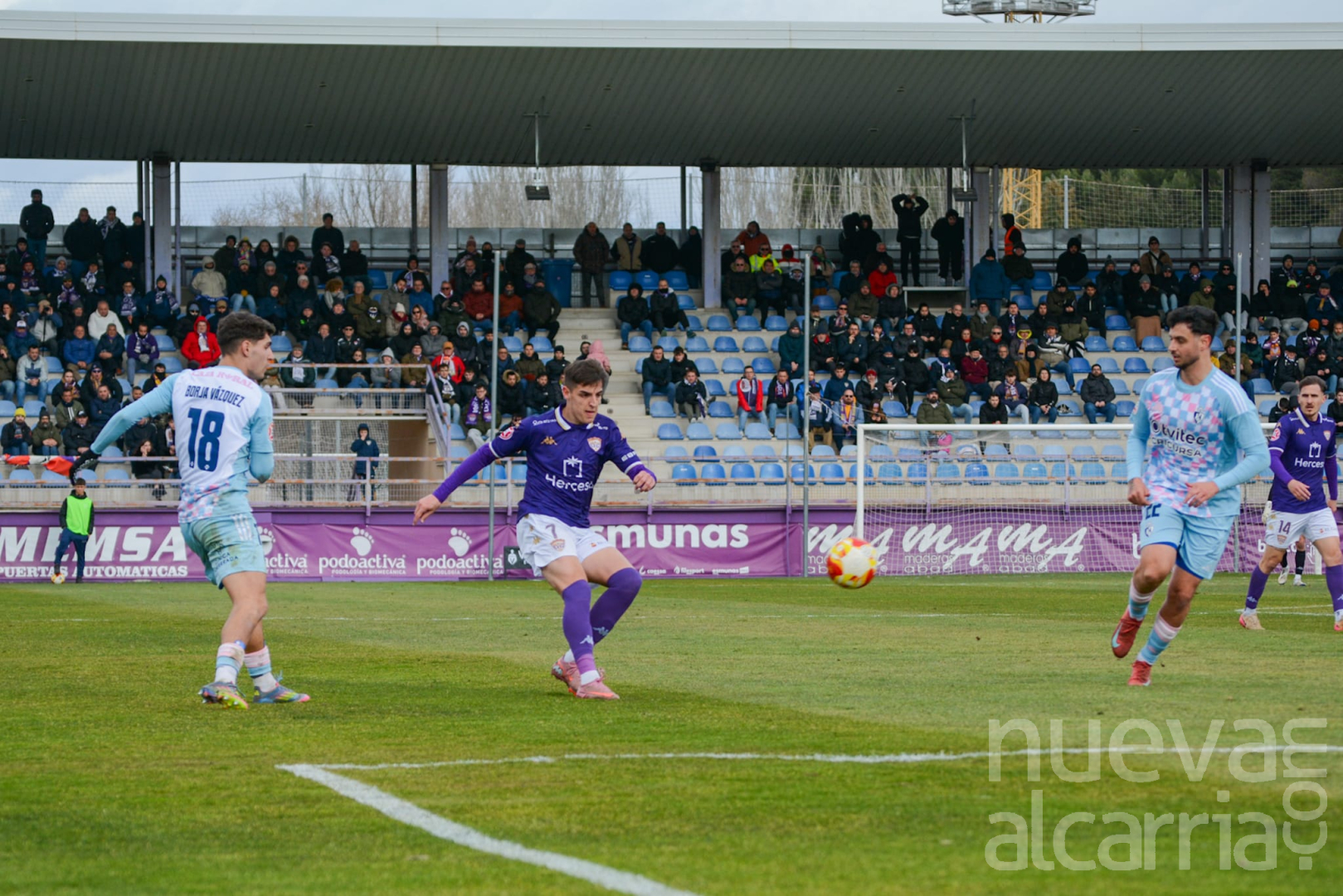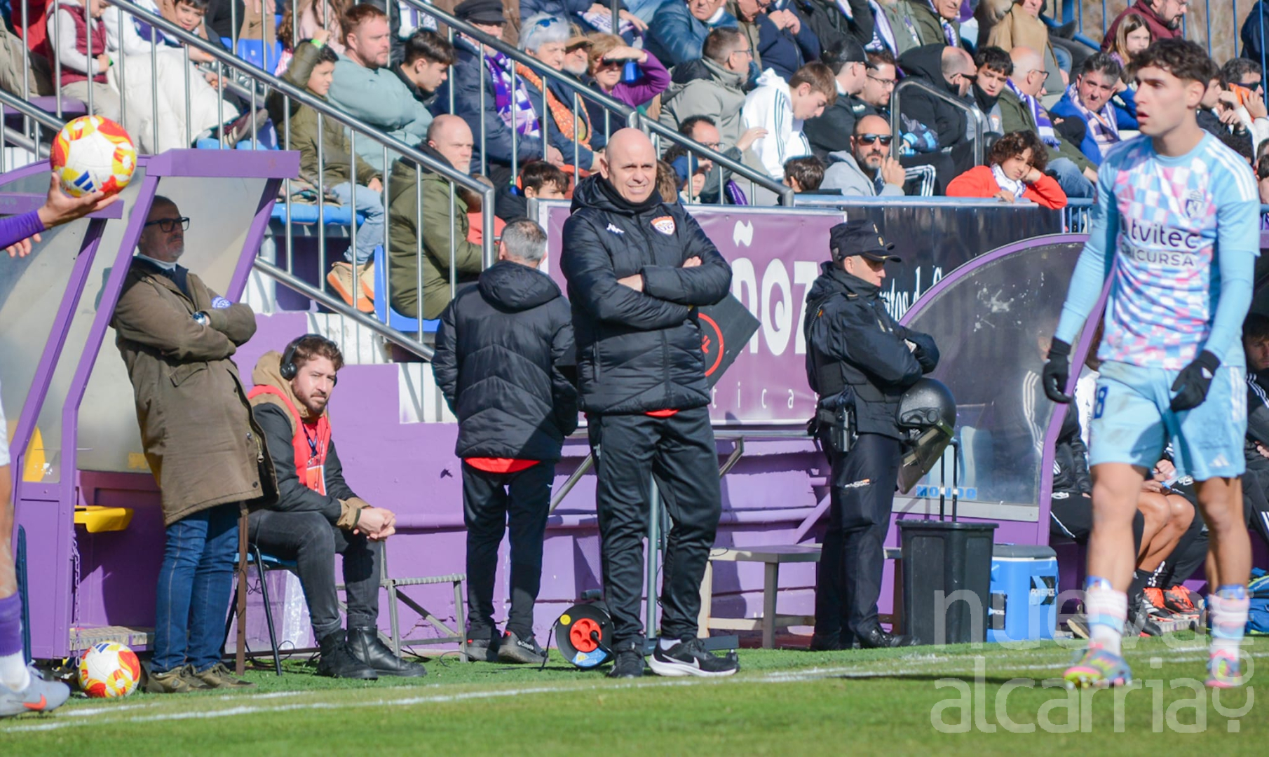 La primera ocasión clara para los morados llegó en el minuto 14, en una acción a balón parado en la que Pablo Muñoz sirvió un centro preciso que Gallardo estuvo cerca de convertir en gol. Los locales insistían, pero se toparon con una Ponferradina bien organizada atrás, dificultando cada intento de acercamiento a su portería.