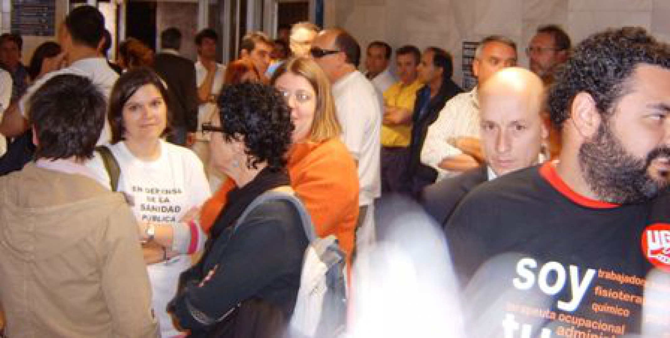 Como en martes anteriores los profesionales sanitarios del Hospital han vuelto a concentrarse en el hall en protesta por los recortes. Convocados por CSIF; CCOO; SATSE; SIC-GS; CESM; USAE y UGT unos 130 sanitarios han vuelto a mostrar su disconformidad por el cese de 64 profesionales en la Gerencia de Atención Especializada y el cierre de 60 camas, que se hará efectivo el próximo 30 de Septiembre. Actualmente se está llevando a cabo un proceso de redistribución de efectivos en la misma Gerencia, lo que supondrá que el total de plantilla asignada a determinadas unidades sea menor, esto es que profesionales que trabajaban en una unidad, van a trabajar en otra a partir del día 1 de Octubre; por supuesto con afectación directa sobre dichos trabajadores e indirecta y negativa sobre los usuarios, apuntaban.