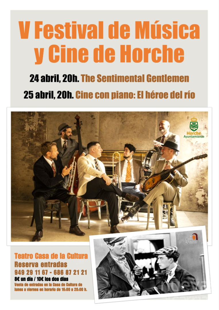 La programación arrancará con fuerza el viernes, 24 de abril, en el Teatro de la Casa de la Cultura con la actuación de The Sentimental Gentlemen a las 20:00 horas, seguida el sábado por una original sesión de cine mudo con acompañamiento de piano en directo, donde se proyectará el clásico de casi cien años “El héroe del río”, dirigido por Adrián Begoña.