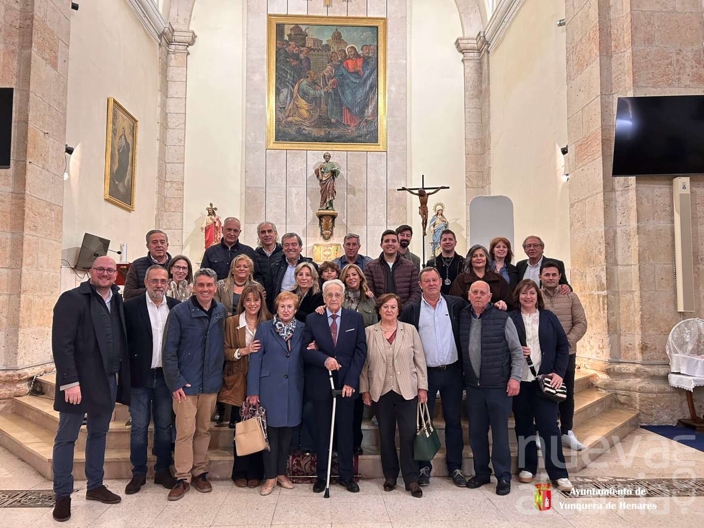 La jornada comenzó a las 12.00 horas con una misa en la parroquia de San Pedro Apóstol, presidida por Don José Benito, a la que asistieron miembros de la asociación, representantes del Ayuntamiento de Yunquera de Henares, integrantes de la Hermandad de la Virgen de la Soledad, además de familiares y amistades del homenajeado.