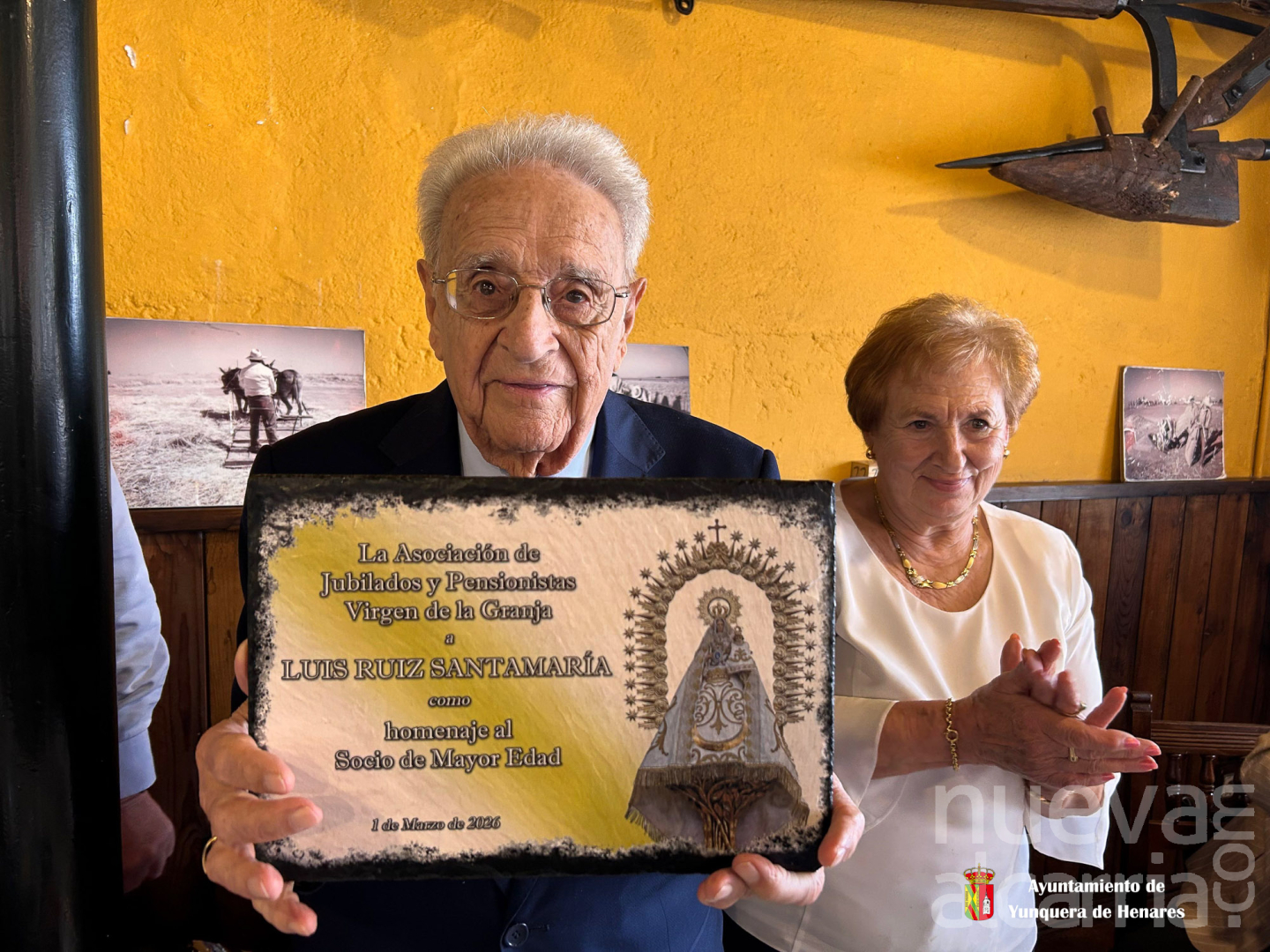 La Asociación de Jubilados y Pensionistas Virgen de la Granja celebró en Yunquera de Henares la festividad de los Santos Ángeles de la Guarda con un acto en el que rindió homenaje a Luis Ruiz Santamaría, socio de mayor edad de la entidad.